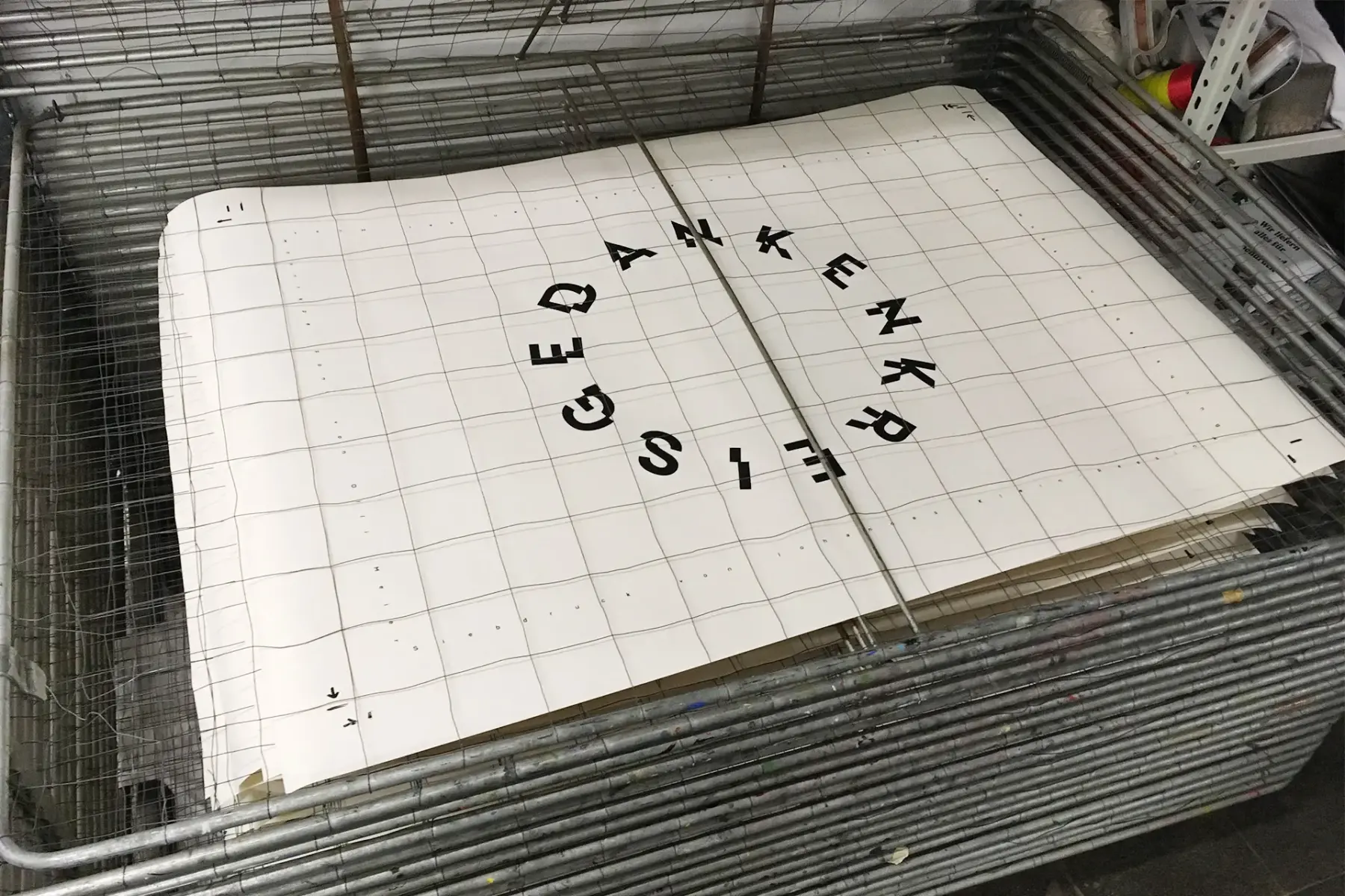 Das Poster ist eine Herzensangelegenheit. Jede beteiligte Person hat es ohne eine Vergütung gemacht – rein aus dem Gedanken, dem Buchstabenmuseum eine kleine Freude zu bereiten. Die händischen Schnittmarken wirken fast wie eine Unterschrift des Druckers. Es zeigt so besonders schön, dass jedes einzelne in Handarbeit entstanden ist. Darum sind auch alle Poster unbeschnitten.