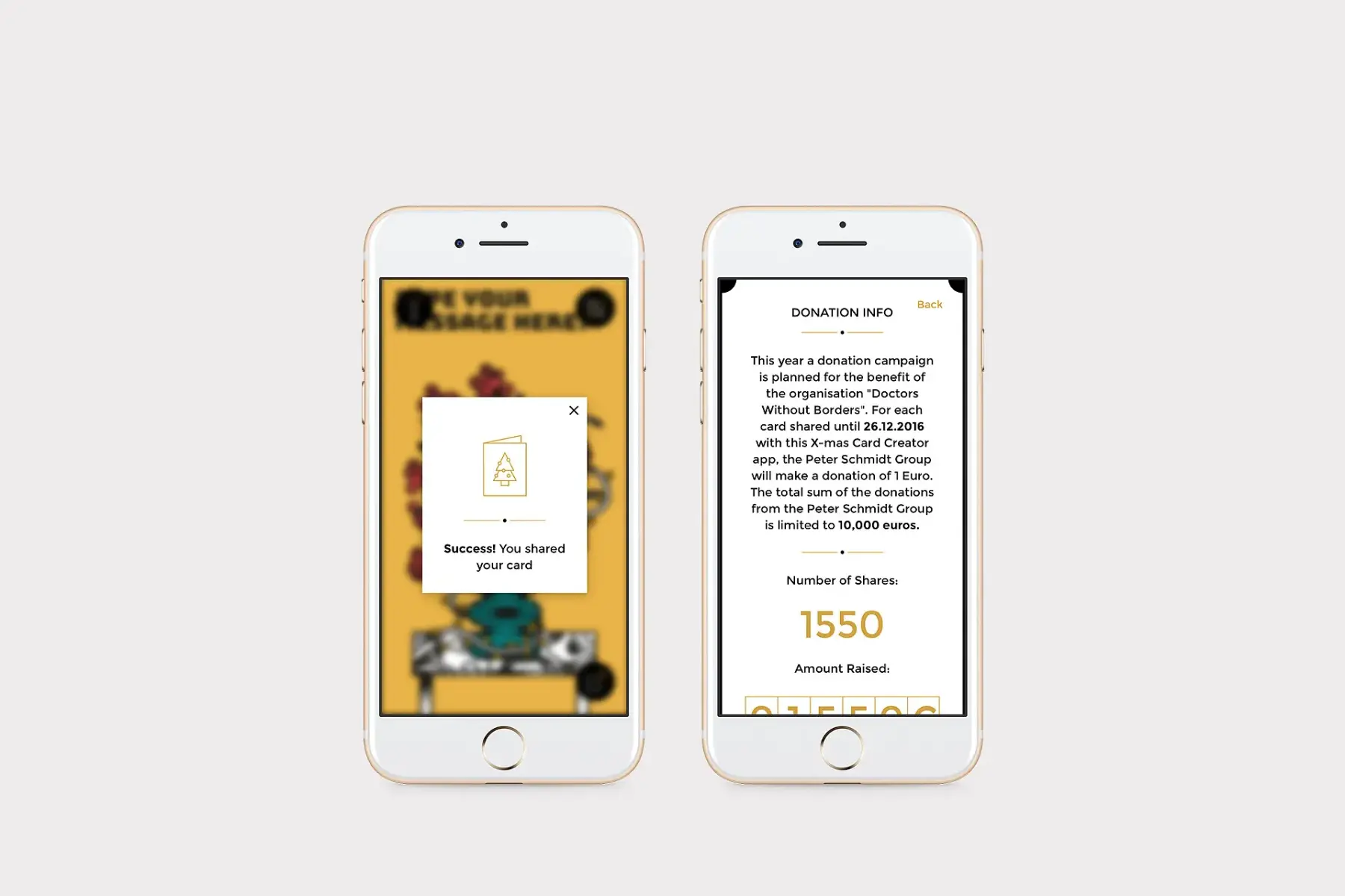 Weihnachten ist für viele Unternehmen die Zeit, gemeinnützige Organisationen mit einer Spende zu unterstützen. Die Marken- und Designagentur Peter Schmidt Group nutzt hierfür eine Smartphone-App mit cleverer Spendenmechanik: Im X-Mas Card Creator lassen sich digitale Weihnachtskarten, die die Designteams der Peter Schmidt Group gestaltet haben, individualisieren und beliebig sharen. Für jede versendete Weihnachtskarte spendet die Agentur einen Euro an „Ärzte ohne Grenzen“.