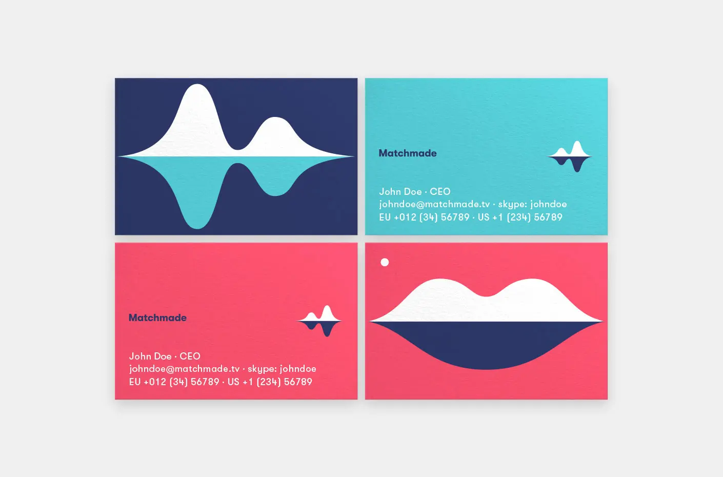 Visuelles Erscheinungsbild für die Plattform Matchmade, welche durch intelligente Algorithmen Verbindungen zwischen Marketern und Influencern herstellt. Die Gestaltung basiert auf der Idee der Kombination zweier komplementärer Hälften zu einem funktionierenden Ganzen.