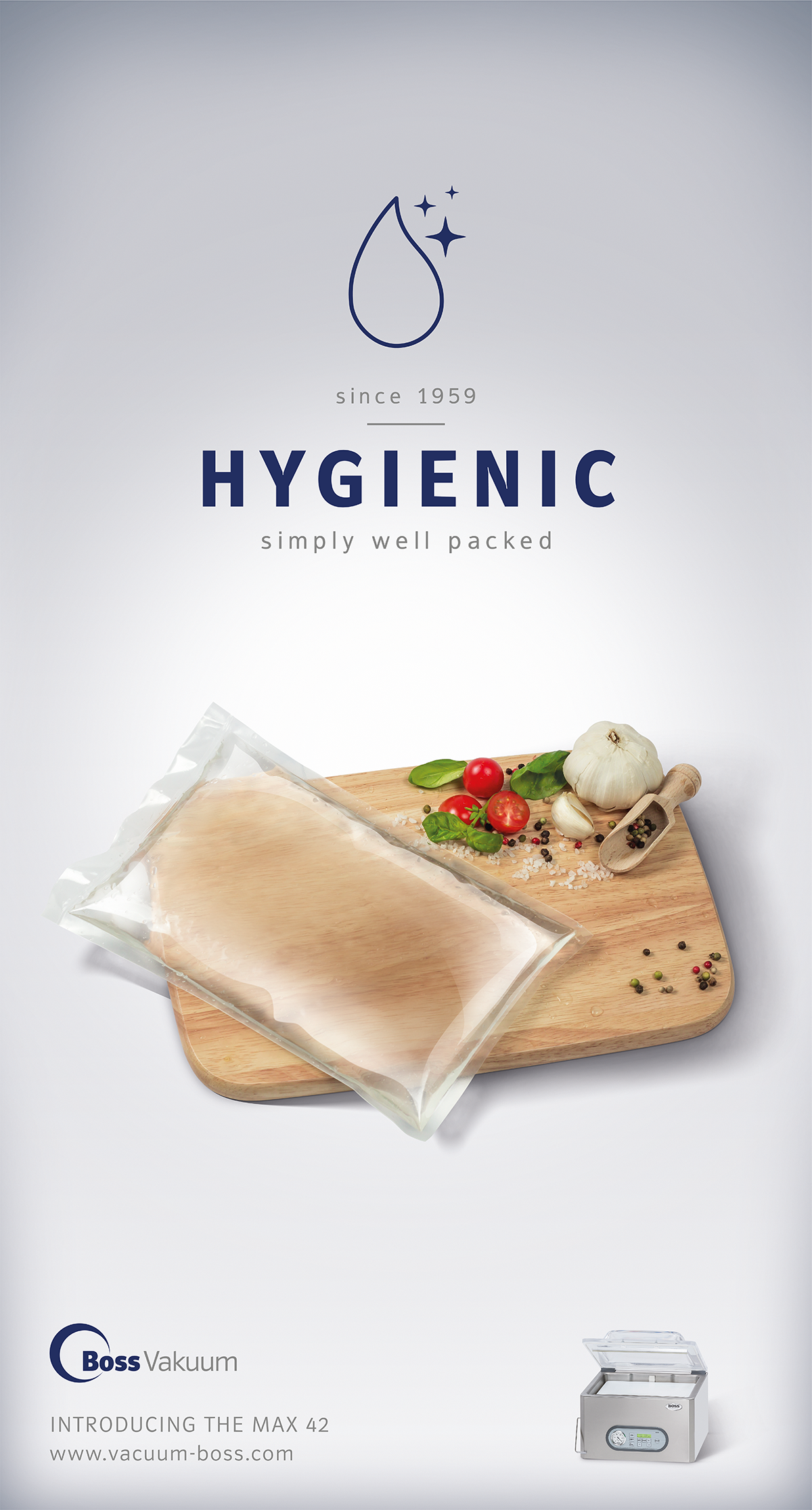 Über 50 Jahre know-how im Vakuum-Verpackungsmaschinen Bereich, zeichnen die Firma Boss Vakuum aus. Die Maschinen überzeugen durch Qualität, Handhabung und Design. Doch wirklich wichtig ist nicht die Maschine, sondern das Endprodukt. Um beides in Einklang zu bringen wurde das Verpackte Endprodukt in Szene gesetzt und unterstützend zu jeder Maschinenserie eine Hauptaussage getroffen, die sich in der Bildkomposition wiederfindet.