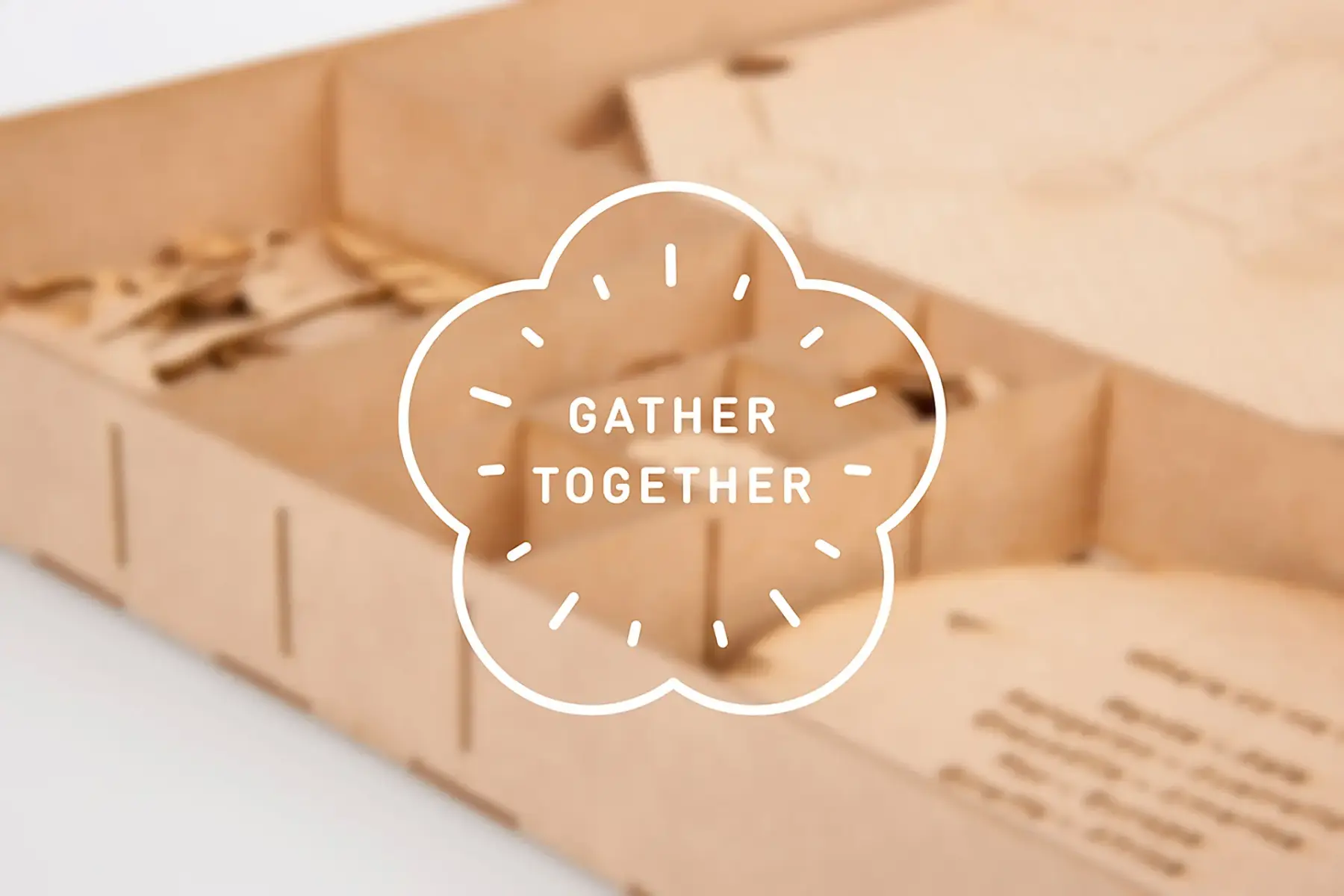 »Gather Together« ist ein kooperatives Brettspiel für Kinder ab dem Grundschulalter. Ziel ist es, den Kindern ein Gefühl für Nachhaltigkeit zu geben, indem sie zusammen versuchen verschiedene nachhaltige Aufgaben zu lösen. Dabei bauen sie zum Beispiel eine Schule, ein Krankenhaus oder bepflanzen eine Plantage. Der Gegner sind dabei jedoch nicht die anderen Mitspieler, sondern die Zeit. Alle Spieler versuchen gemeinsam durch Kooperation die Aufgaben zu bewältigen bevor die Zeit abgelaufen ist.