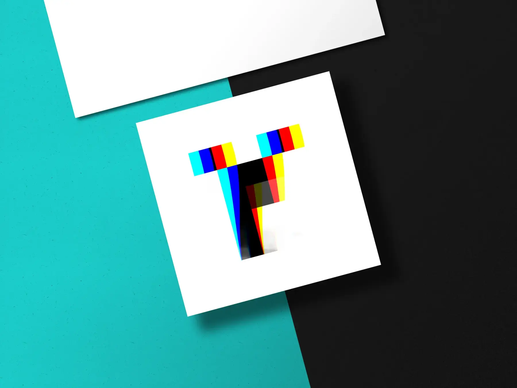 The design follows the same principle and disrupts the black and white with ‘handmade’ RGB glitches.