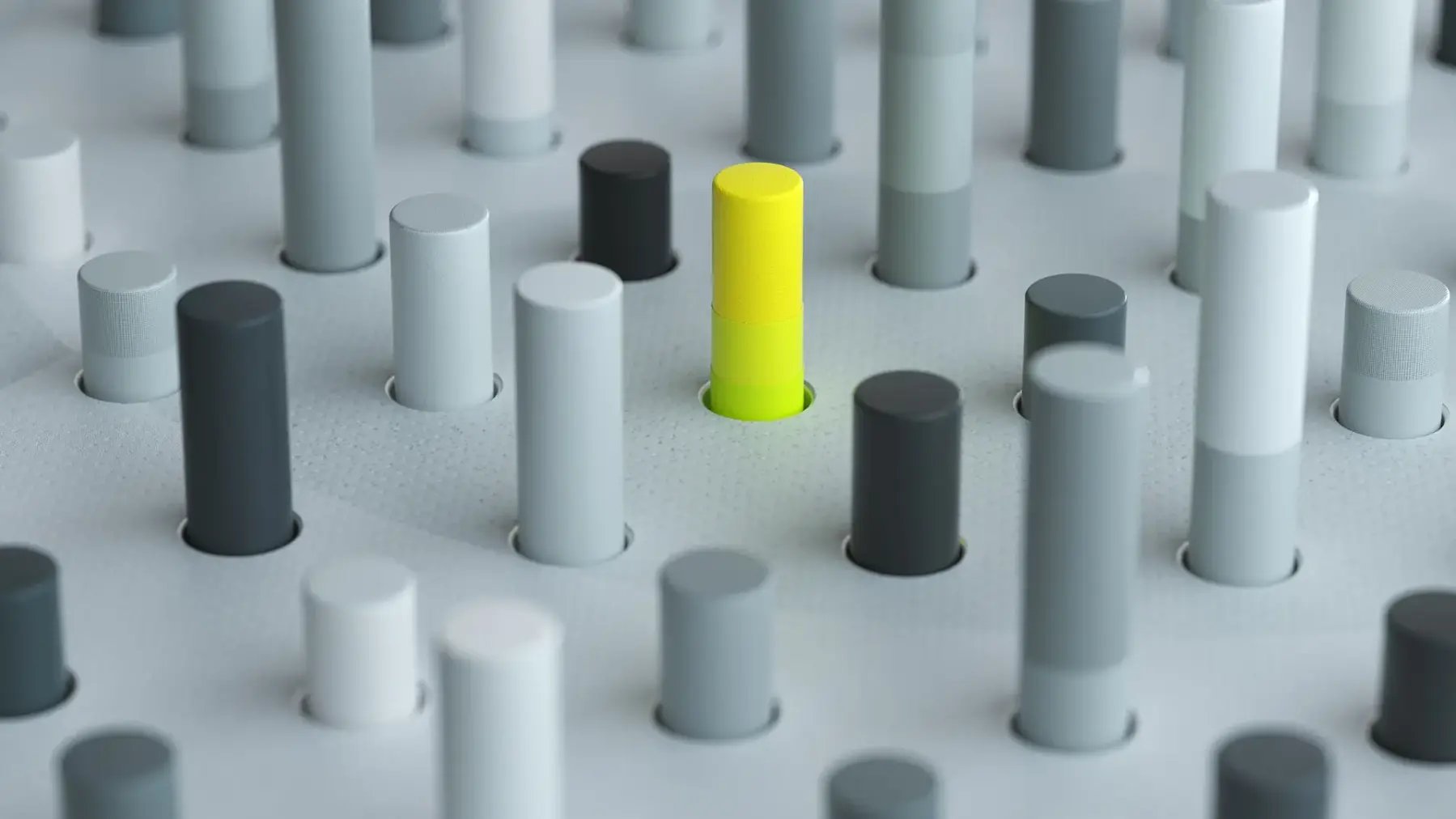 The colour palette is based on the new CI of Comdirect, predominantly anthracite and grayscale. Yellow acts as the highlight colour with a gradient to green drawing the viewer’s attention to the stories’ heroes. The environment is based on dots, points and circles inspired by visual language used in the world of stock markets.