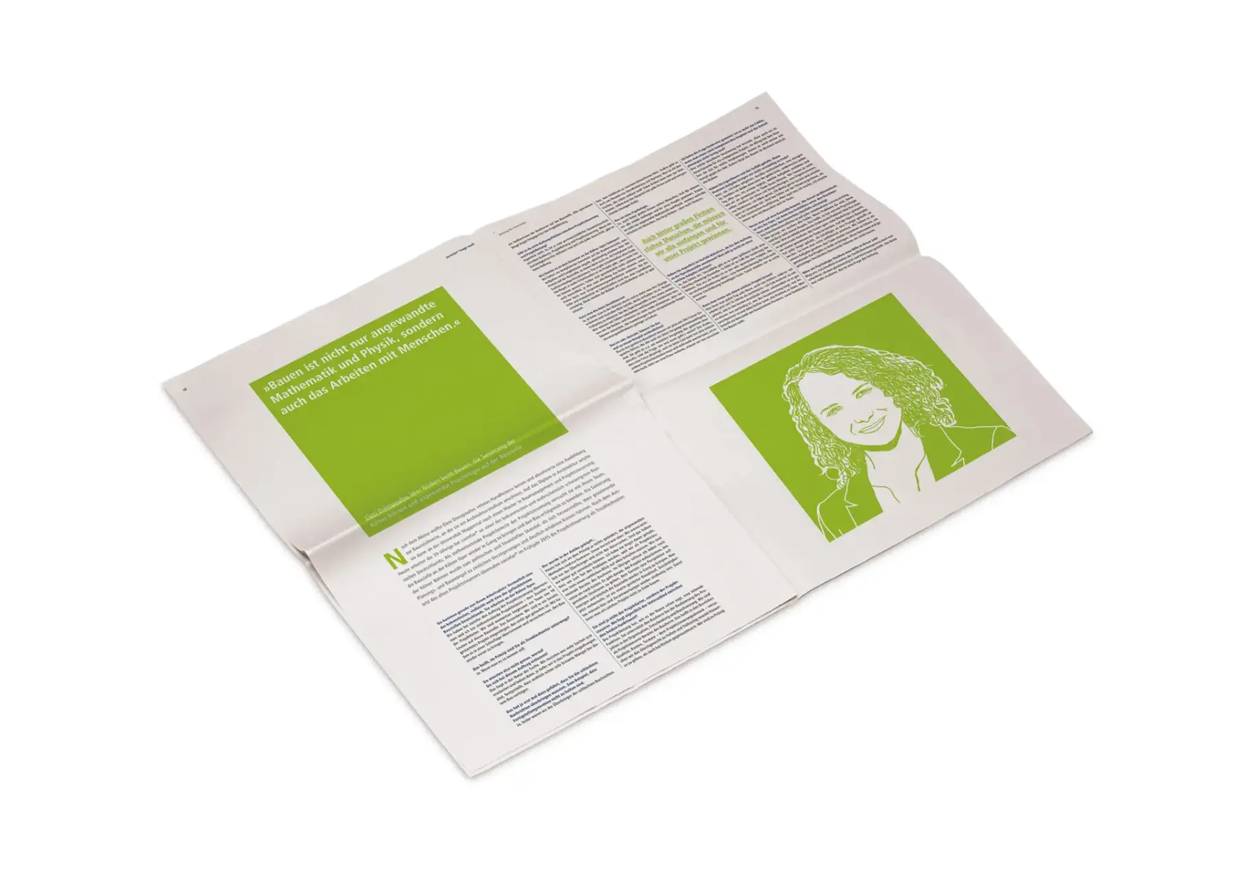 Formfaktor entwickelte für Zarinfar ein Kundenmagazin, das auf das sonst übliche Selbstlob und eine entsprechende Selbstbespiegelung gänzlich verzichtet. Jede Ausgabe setzt ein Thema und führt mit Menschen, die einen Bezug zu diesem Thema haben, ausführliche Interviews. Die erste Ausgabe hat das Thema »Risiko« und interviewt dazu einen Hochseilartisten, einen Start-up-Unternehmer, einen Einsatzleiter der Feuerwehr oder einen Fluglotsen. Um der Zeitung ein visuell einheitliches Gesicht zu geben, wurde auf Fotos ganz verzichtet. Jede Ausgabe wird von einem Illustrator gestaltet – in diesem Fall Andreas Schickert aus Mainz.