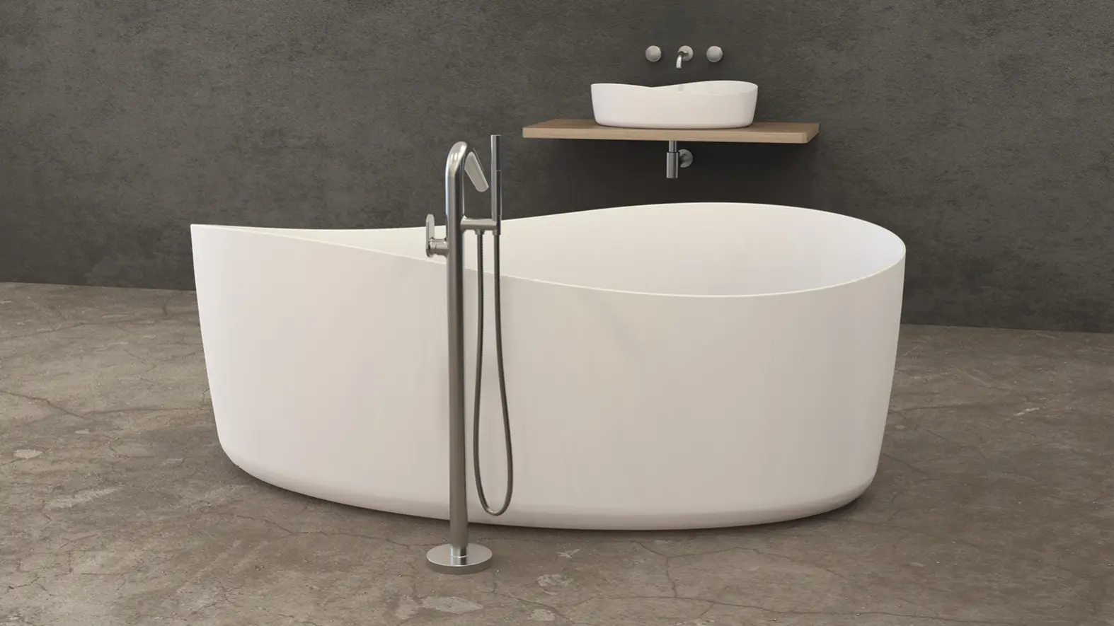Inspiriert von den niemals ruhenden Wellen besticht die Form durch seine geschwungene Linie, die das Erscheinungsbild der Badewanne und Waschbecken aus jedem Blickwinkel anders erscheinen lässt. Jedes der Objekte wirkt, dank der Formsprache, als sei es ständig in Bewegung. Darüber hinaus ist der Nutzer intuitiv dazu eingeladen, in die Badewanne über den tiefsten Punkt einzusteigen, während er den höchsten Punkt als Unterstützung nutzen kann.