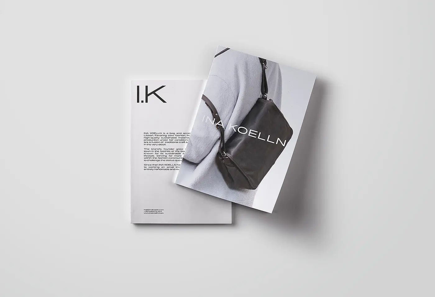 Ina Koelln is a bag and accessory label with a focus on sustainable materials, simple design and a handcrafted production under fair conditions. These issues are the basis of the branding. A straight and clean logo underlines the typical shapes of her products. The „K“ symbolizes a scissor which is used as a link to the craft. Close-up shots of the products create a focus on the high-quality material.