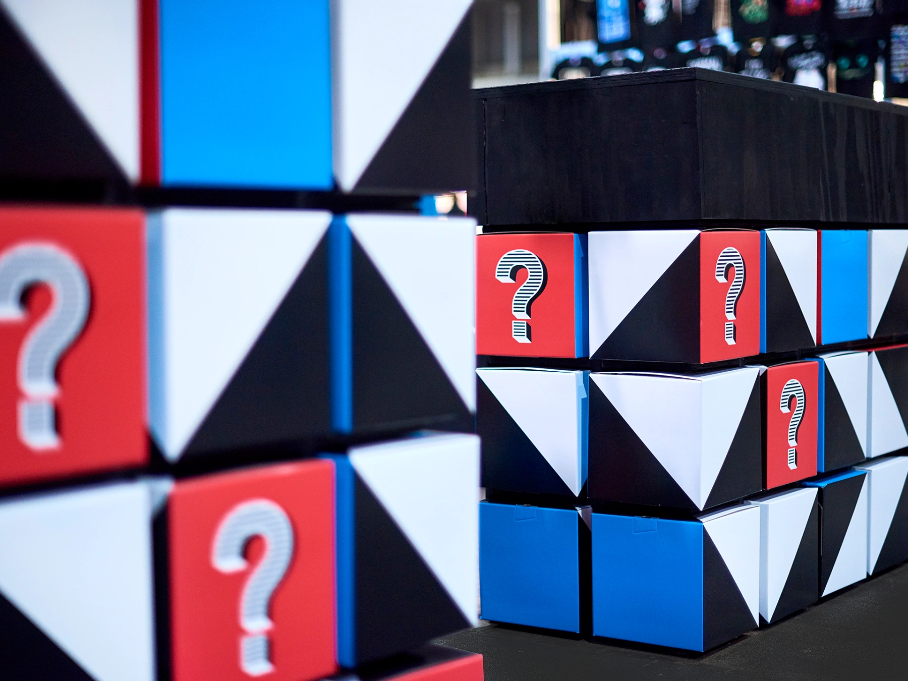 In einem Team aus erfahrenen Innenarchitekten und Designern nahm Herzhoch die Würfelform von Merch in Dice zur Basis, um einen wandelbaren Messestand auf Modulbasis zu entwerfen. Das Produkt an sich wurde somit zum Baustein für den Aufbau, die Elemente lassen sich immer neu kombinieren und garantieren zugleich einen hohen Wiedererkennungswert. Gleiches gilt für das Produkt-Packaging, das mit Kontrastfarben und Typographie Fernwirkung schafft und – durch Käufer gut sichtbar am Haltegriff über das Messegelände getragen – eine direkte Verbindung zum Stand bildet.