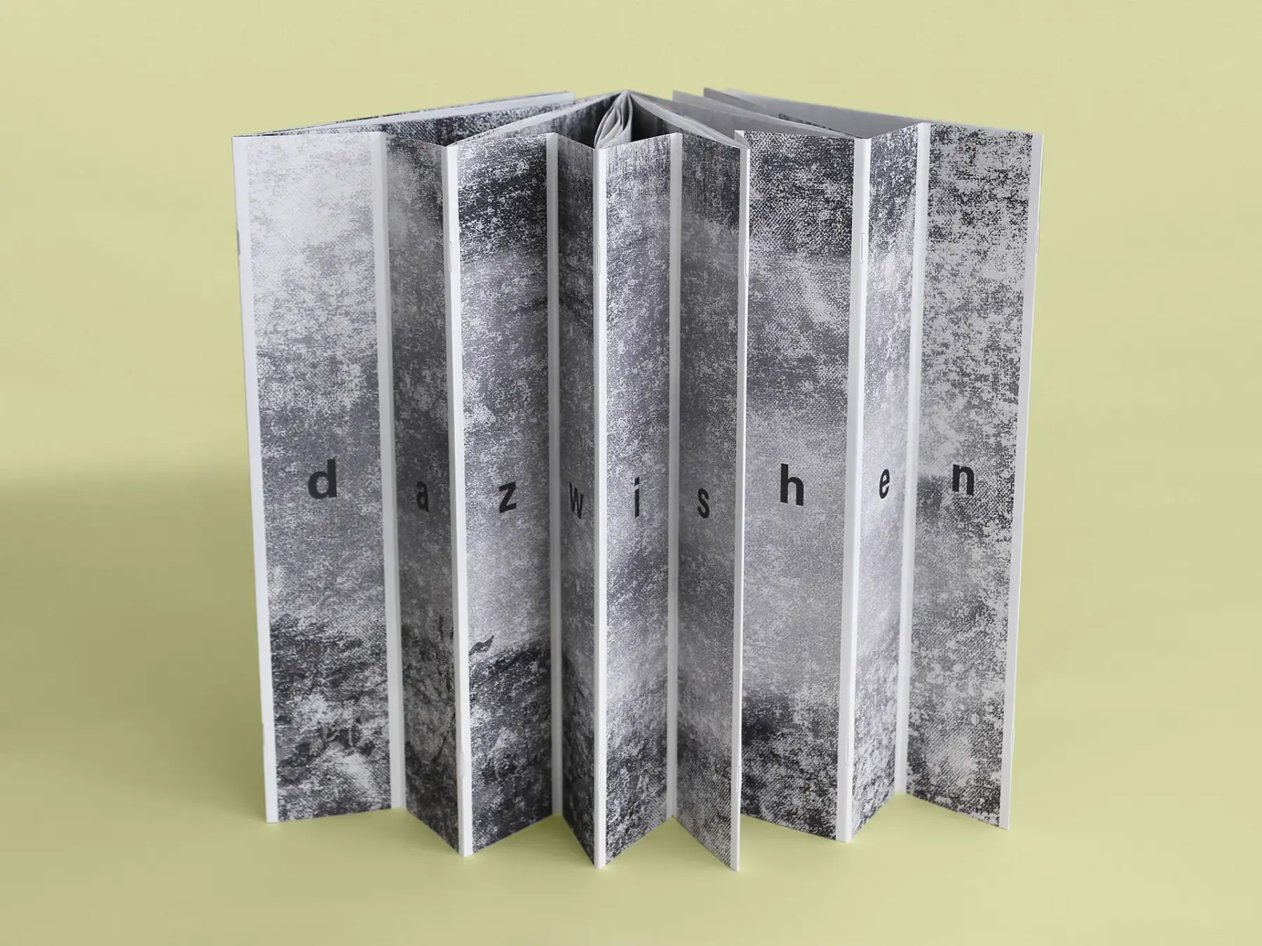 Aber es zählt nicht nur das, was als Erinnerung zurückbleibt. In der Buchgestaltung rückt auch das Vergessene, das, was wegbricht, was nicht mehr korrekt zuzuordnen ist, mit in den Fokus. In einem grauen Rauschen materialisiert sich das Vergessen, das Nicht-mehr-genau-erinnern in Text und Bild. Die teils stark vergrößerten Schwarz-Weiß-Fotografien wurden mittels Aceton bearbeitet, verlieren an Schärfe und Kontur – es bleibt nur eine grobe Ahnung zurück, deuten eher an als genau zu verorten. Das Rauschen zwischen Bild und Text wird ebenso wichtig wie die farbigen Fotografien, die lediglich als kurze Pausen zwischen den einzelnen Heften zu finden sind und zum Zeugnis ganz konkreter Momente werden. Die einzelnen Kapitel sind auf einen Leporello geheftet, der im ausgeklappten Zustand die Versatzstücke der Fotografien zu einem Gesamtbild zusammenfügt.