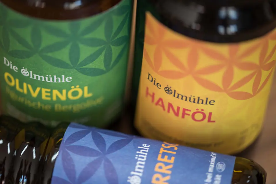 Die Ölmühle ist eine Neuausrichtung – weg vom gedankenlosen, schnellen Konsum hin zum Ursprung, dem bewussten Erleben und achtsamen Umgang dem Leben gegenüber. Im Mittelpunkt stehen hochwertige, kaltgepresste und zu 100% naturbelassene Speiseöle. In der „gläsernen“ Ölproduktion wird das Öl noch händisch gewonnen. Mit einer wassergekühlten Ölmühle wird die Seele der Saat langsam und bedacht ausgepresst.