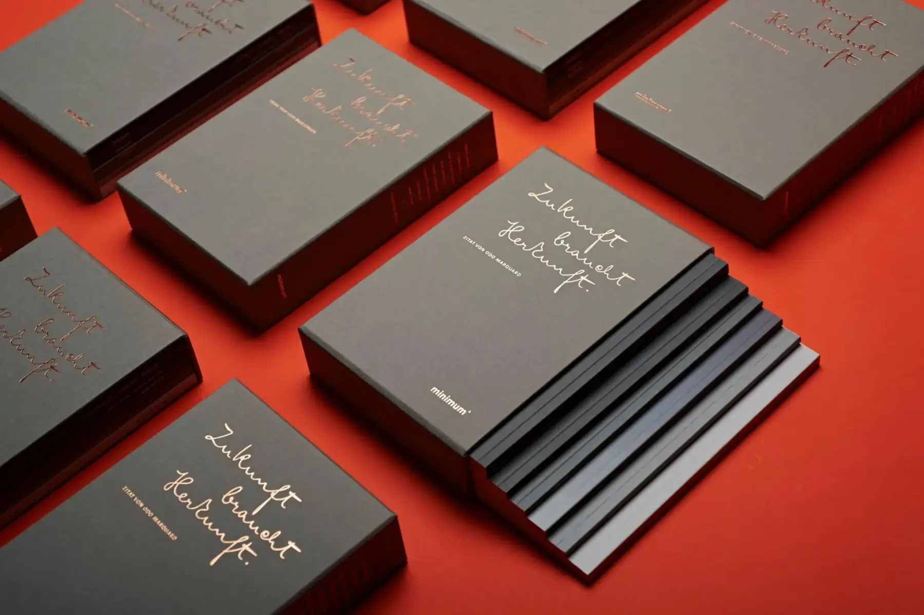 Mit viel Liebe und Sinn für die Ästhetik dieser feinsinnigen Virtuosen übernahm Rosendahl Berlin Layout und Satz, Gestaltung, Produktion und Materialauswahl der exquisiten Reihe. Ein edler Schuber komplettiert das Ensemble und gibt mit Otto Marquards Zitat (in metallischer Heißfolienprägung) die konsequente Richtung vor – »Zukunft braucht Herkunft.«