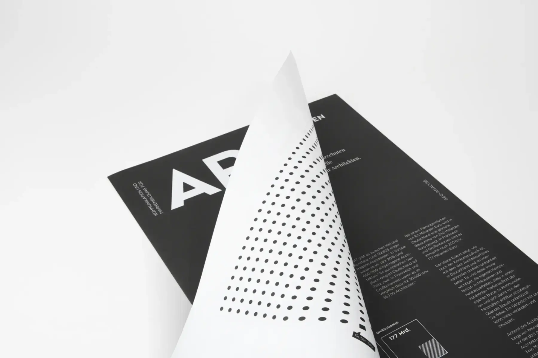 White Paper sind kurze, fachlich seriöse und kompakte Ausführungen zu einem Produkt, Prozess oder einer Entwicklung. Sie werden oftmals im Industrie-Kontext eingesetzt. Die Idee des White Papers haben wir adaptiert. Erstes Ergebnis ist das „Black Paper“, das den Status von Architekturbüros hinsichtlich ihrer Markenbildung und Kommunikation analysiert. Inspirierend und informativ beleuchtet es verschiedene Bausteine und deren Relevanz für ein erfolgreiches Corporate Image. Die Lektüre mit Mehrwert präsentiert sich im Zeitungsformat und ist eindrucksvoll, reduziert in „schwarz/weiss“ gehalten.