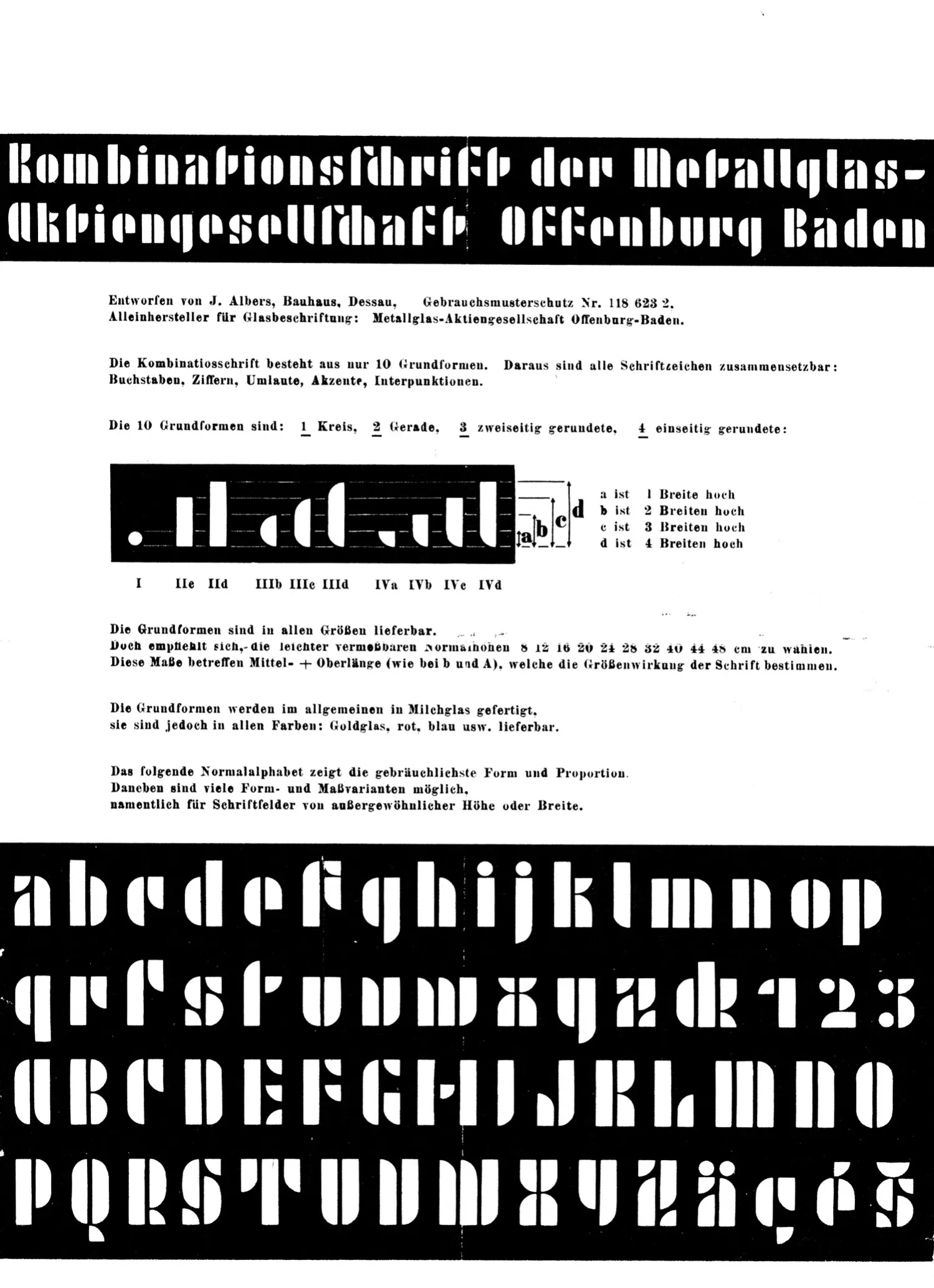 Abb. 33. Broschüre um Josef Albers’ Kombinationsschrift, produziert von der Metallglas Aktiengesellschaft Offenburg-Baden, zu bewerben, 1930