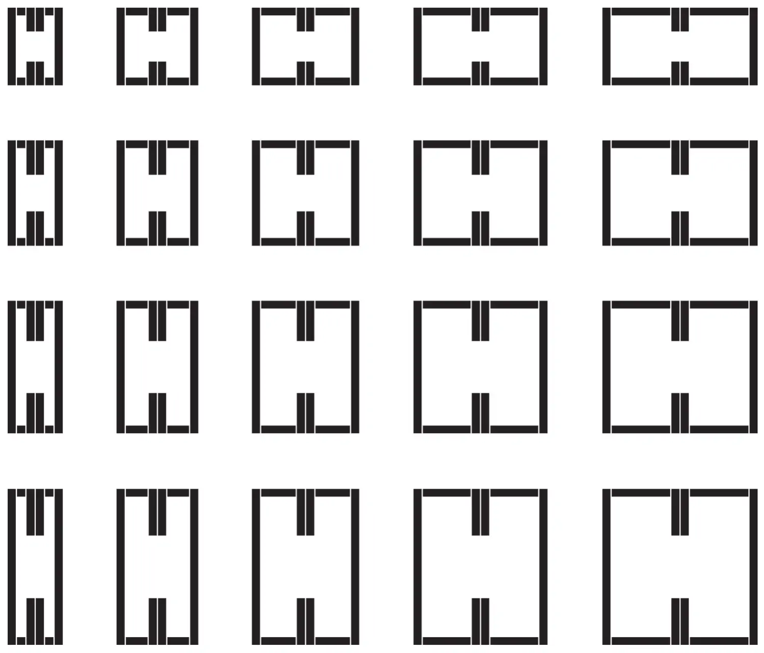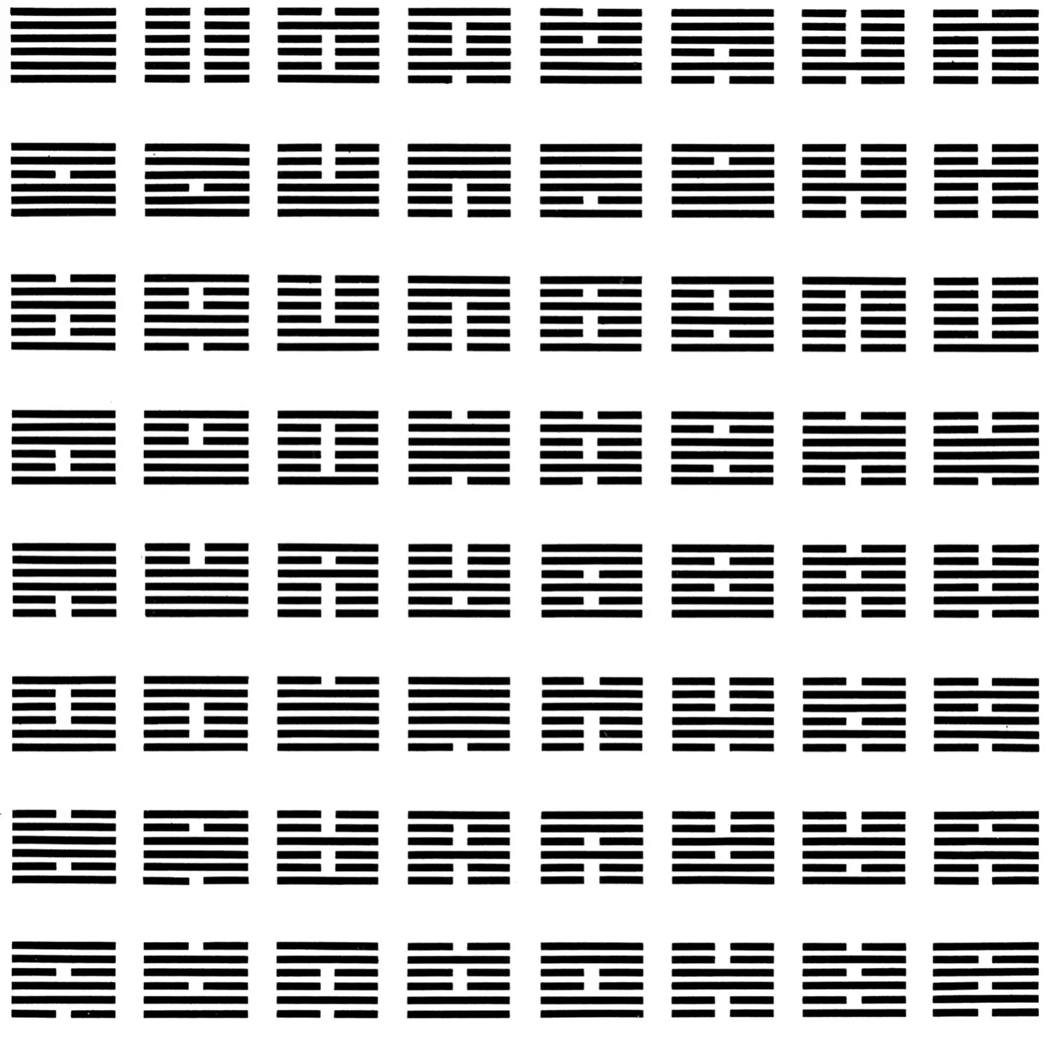 Die Systematisierung von Formen (oder Zeichen) ist so alt wie die geschriebene Sprache. In dem Buch Der Mensch und seine Zeichen. Schriften, Symbole, Signete, Signale 3 stellt Adrian Frutiger das Yì Jīng vor. Es wurde 3000 v. Chr. entwickelt und ist somit eines der ältesten uns bekannten Zeichensysteme. Die Zeichen des Yì Jīng bestehen aus sechs übereinander angeordneten horizontalen Linien, die durch eine Lücke unterbrochen werden können oder ganz bleiben. Dadurch entstehen 64 verschiedene Zeichen. Jedem Zeichen wurde eine Bedeutung zugeordnet. Die Kombination der Zeichen sollte Zukunft vorhersehen.