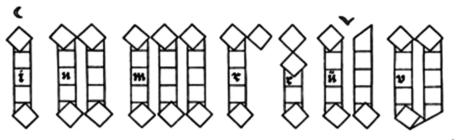 Abb. 19. Modular construction of the gothic minuscle letters by Dürer, 1525