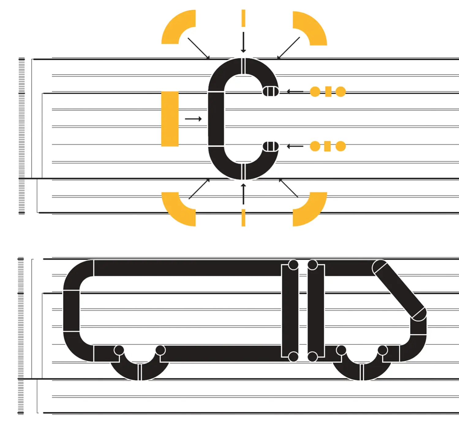 Während es die konkreten Formen sind, die die zuvor beschriebenen Typen (das Manual, die Schablone und der Baukasten) ausmachten, so ist es bei dem Programm der Prozess, der die Formen erzeugt. Also anstatt Formen zu entwerfen, entwirft Gerstner Systeme, die Formen entwerfen oder wie Gerstner sagen würde „statt Lösungen für Aufgaben, Programme für Lösungen“.