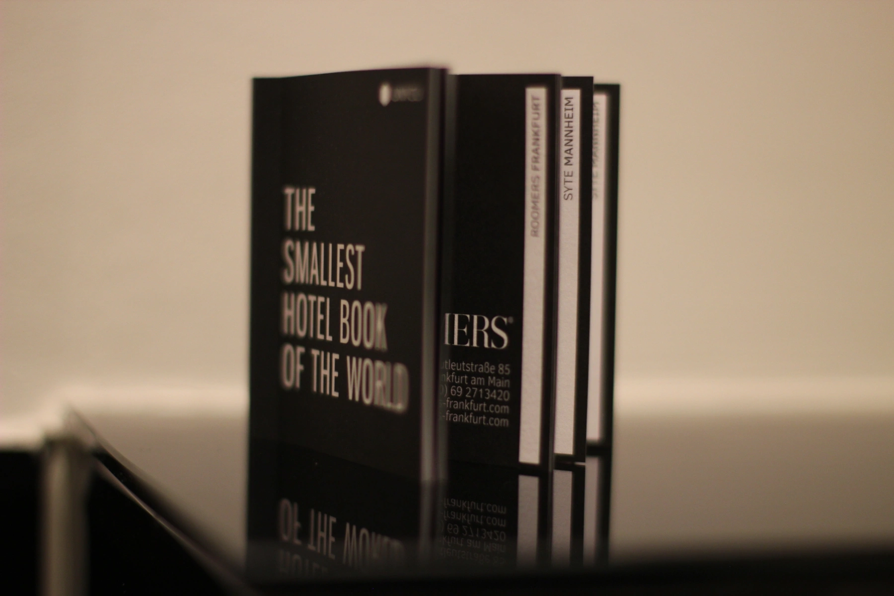 Von wegen Print ist out. Nicht wenn es um The smallest Hotel Book of the World geht. Sind es nicht die kleinen Dinge die ein Hotelerlebnis auszeichnen? Die frischen Blumen, die Kerzen und das aufmerksame Personal? Und sind es nicht die kleinen Taten, die kleinen Begegnungen, die kleine Aufmerksamkeiten, die uns in Erinnerung bleiben? Wir empfinden es so. Wir präsentieren unsere erste Auflage mit führenden Hotels aus Frankfurt, Heidelberg, Mannheim, Deidesheim Pfalz und Baden-Baden. Das Buch ist in limitierter Auflage ausschließlich bei den Partnerhotels zu erhalten. Das Design ist modern und schlicht. Das Buch im Miniformat ist handlich und perfekt zum mitnehmen.