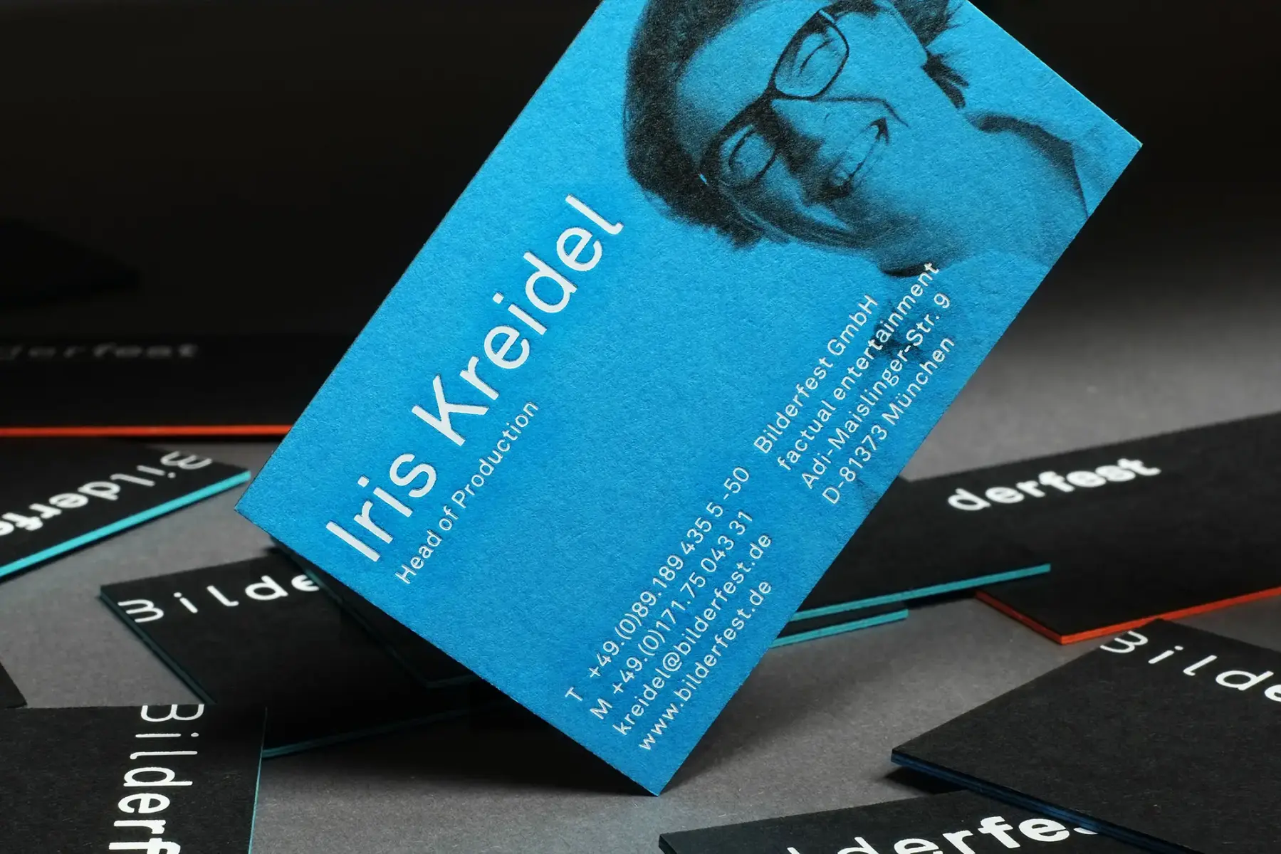 Im Mittelpunkt des Corporate Designs steht eine bewegende Wortmarke, die sich mit ihren Gegenpolen bereits in Wort und Bild manifestiert. Das Farbkonzept ist bunt und unbunt zugleich. Bilderfest ist die Summe der einzelnen Produktionen – der Inhalt gibt somit das Farbklima vor. Im Spotlight der Filmproduktion stehen die Persönlichkeiten mit ihrer erzählerischen und visuellen Innovationsfreude sowie das Spiel mit Formaten und den Grenzen der Genres. Großer Wert wurde auf die Materialien und Produktionstechnik der Kommunikationsmittel gelegt, die auch den eigenen Unternehmensauftritt erleb- und greifbar machen.