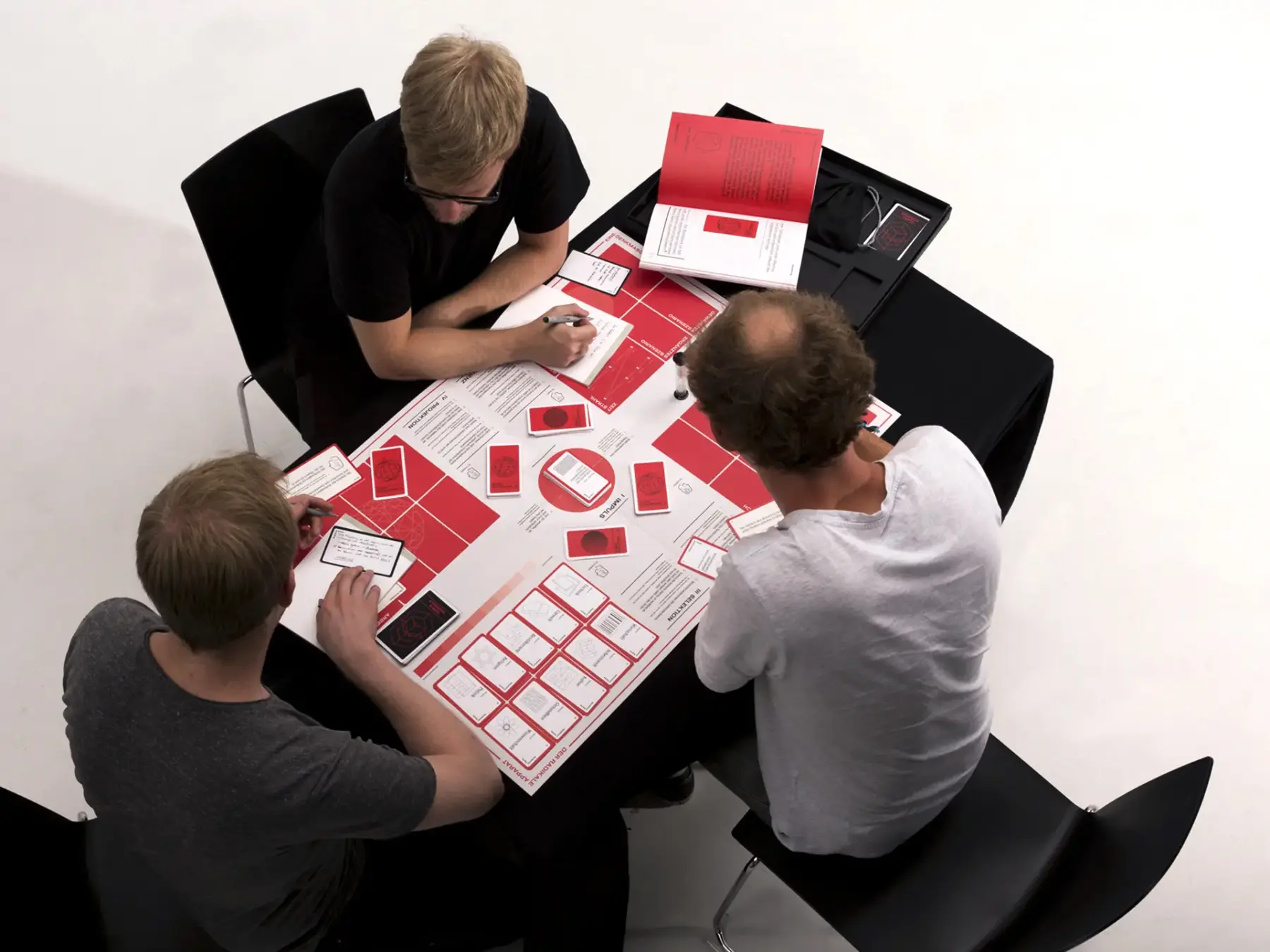 Neben Spielfeld, Spielkarten und Spielsteinen enthält der Radikale Apparat auch eine Gebrauchsanweisung. Diese beinhaltet, abgesehen von den genauen Spielregeln, auch Informationen zu Funktion und Bedeutung, selbst verfasst Artikel und Essays sowie Interviews mit Experten in den Bereichen Design und Zukunftsforschung.