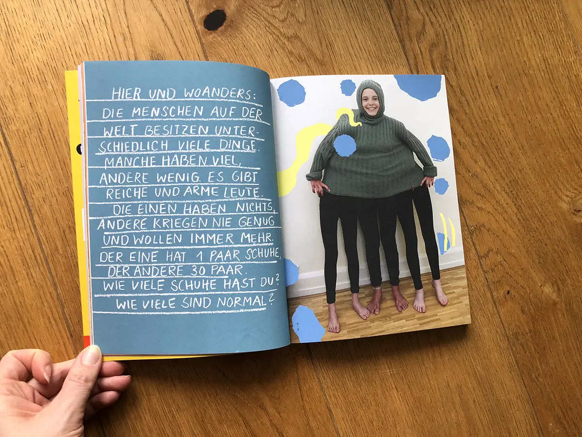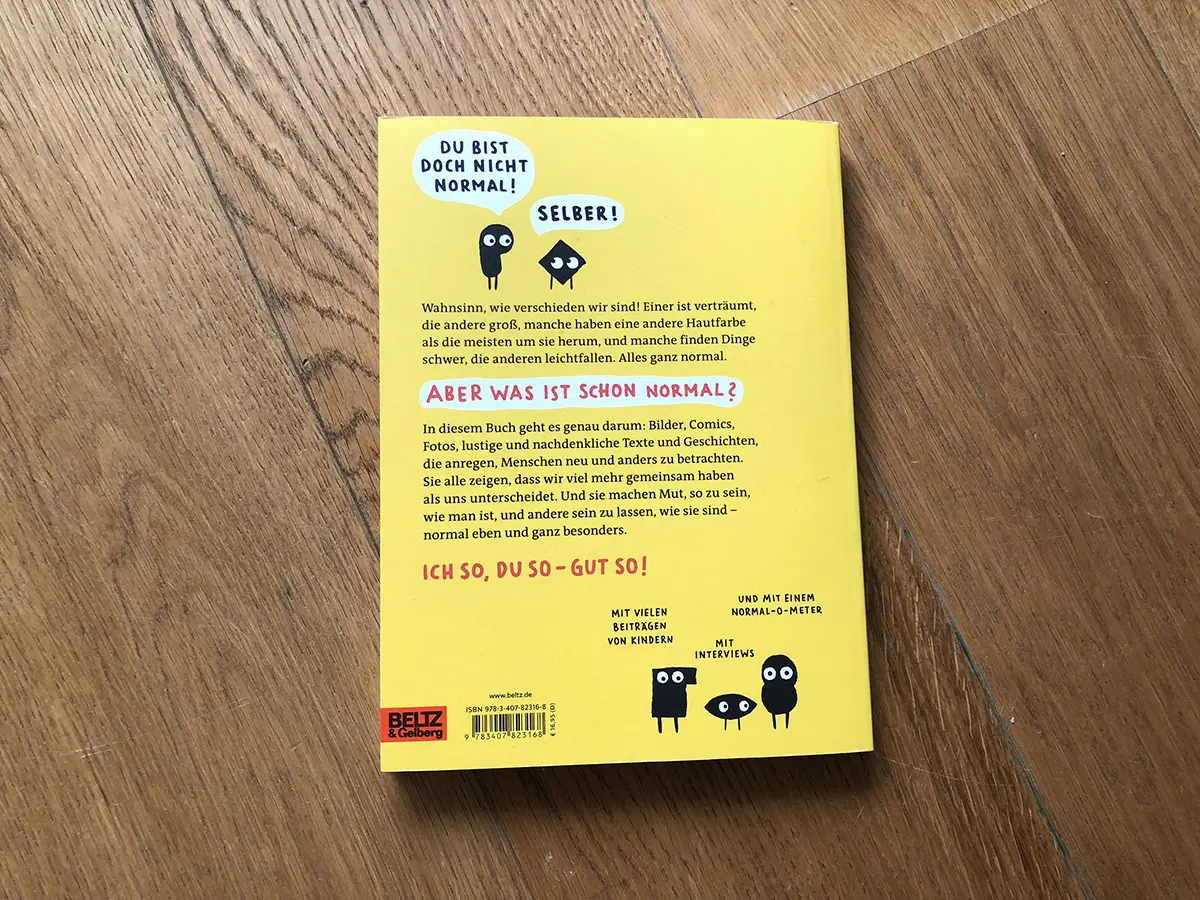 Das Buch zeigt auf, dass normal zu sein im Auge des Betrachters liegt. Jeder sieht je nach Herkunft, Kulturkreis, Umfeld andere Dinge als normal an – das ist unsere viel zitierte Filterbubble. Damit sich das Kollektiv in dem Buch nicht nur in der eigenen Ansicht verliert, kommen viele andere zu Wort. Kinder aus anderen Ländern beantworten Fragen, Erwachsene erzählen aus ihrer Kindheit. So erfährt man, was es mit einem macht als »nicht normal« zu gelten und dass das kein schönes Gefühl ist. Und genau das macht dieses Buch so besonders: Es stellt dieses »normal sein wollen« in Frage und zeigt wie einzigartig Menschen sind und wie vielseitig jeder einzelne ist. Diese Erkenntnis und die Akzeptanz dessen macht das Zusammenleben einfacher.