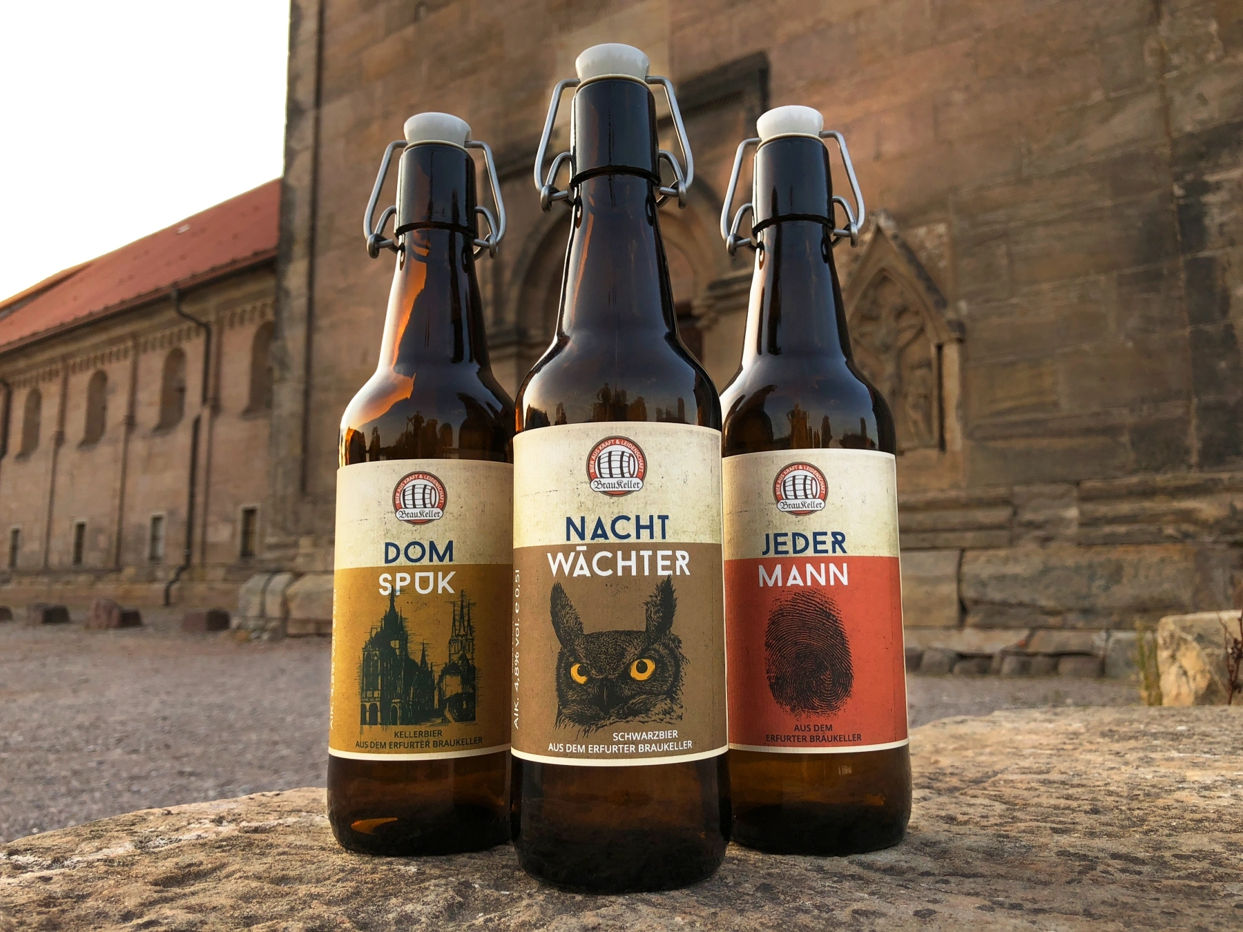Entstanden sind vorerst 3 Etiketten: Nachtwächter (Schwarzbier), Domspuk (Kellerbier) und Jedermann (individuelle Abfüllung). Die Besonderheit bei dem Etikett “Jedermann” ist die zusätzlich individualisierbare Beschriftung. Der Brauer kann nach Belieben die Biersorte, den Alkoholgehalt, die Zusatzstoffe und die Farbe des Bieres auf dem Etikett händisch eintragen bzw. ankreuzen. So hat jede Abfüllung seinen eigenen Charakter und verstärkt den persönlichen Bezug zum Kunden. Der zusätzliche Verkauf in Erfurter Feinkostläden ist geplant, jedoch soll das Produkt nicht im Handel gelistet werden und so ein kleines Unikat bleiben.