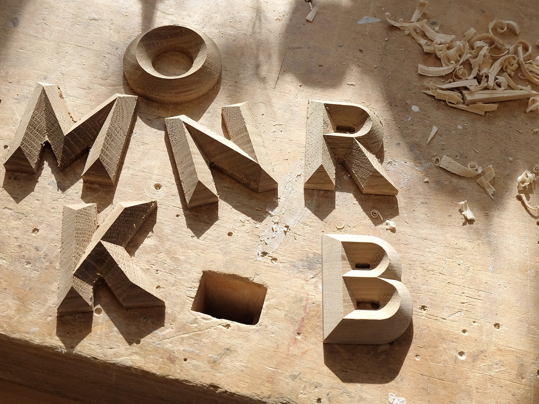 Der Klettersport fordert mitunter eine extreme Auseinandersetzung mit dem Berg—das Bezwingen der Wand zum Erreichen des Grats oder Gipfels. Wir hatten die Ambition, für Beschriftungszwecke einen Font zu entwickeln, dem das Wesen des Berges immanent ist: dreidimensionale Buchstaben, die durch den Grat definiert werden—durchgängig linear und sowohl zwei- als auch dreidimensional einsetzbar. Nach langem Zeichnen, Tüfteln, Recherchieren und Korrigieren fanden wir in der Schreinerei Ohlinger eine Partnerin, die Blut leckte an diesem Projekt—und gemeinsam mit uns an Einzeltypen feilte und Prototypen erstellte. Belohnt wurden wir mit rund 300 Holzbuchstaben—jeder einzelne von Hand bis ins Detail nachgearbeitet. Zum Einsatz kamen jene unter anderem für die Kennzeichnung der elf Konferenzräume, denen wir poetische, auf Gebirge verweisende Namen gaben wie „Euphorie Eck“, „Jubeljoch“, „Stille Kuppe“ oder „Kreativgipfel“. Vertikal gesetzt nehmen die Begriffe Bezug auf die Bewegungsrichtung beim Klettern.