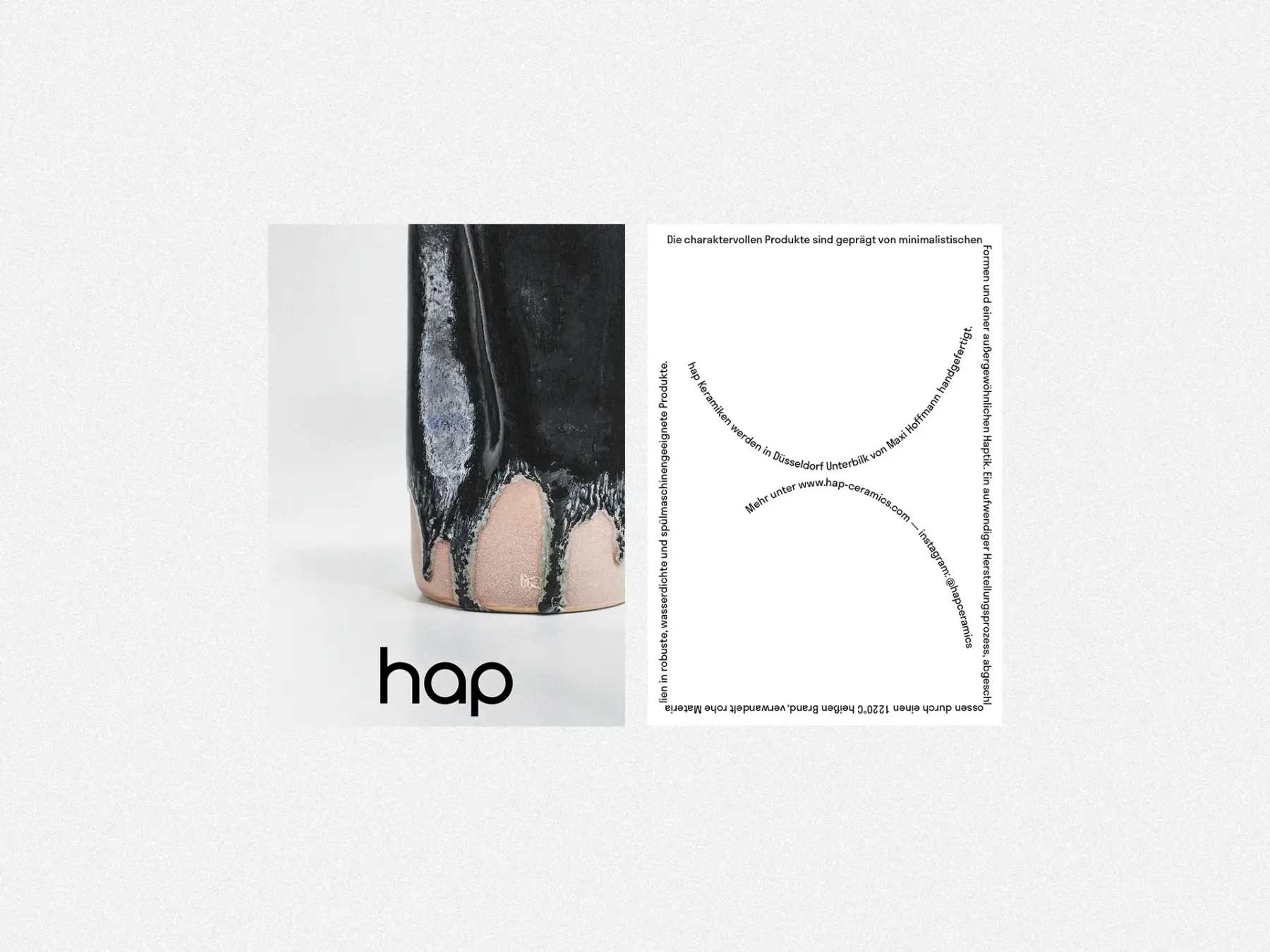 Für die Gestaltung des visuellen Erscheinungsbildes von Hap, einem jungen Keramiklabel, hat Studio Abracradama sich an den Formen und Farben der Keramik orientiert, die ebenfalls in Düsseldorf handgefertigt wird und von Maxi Hoffmann ins Leben gerufen wurde.
