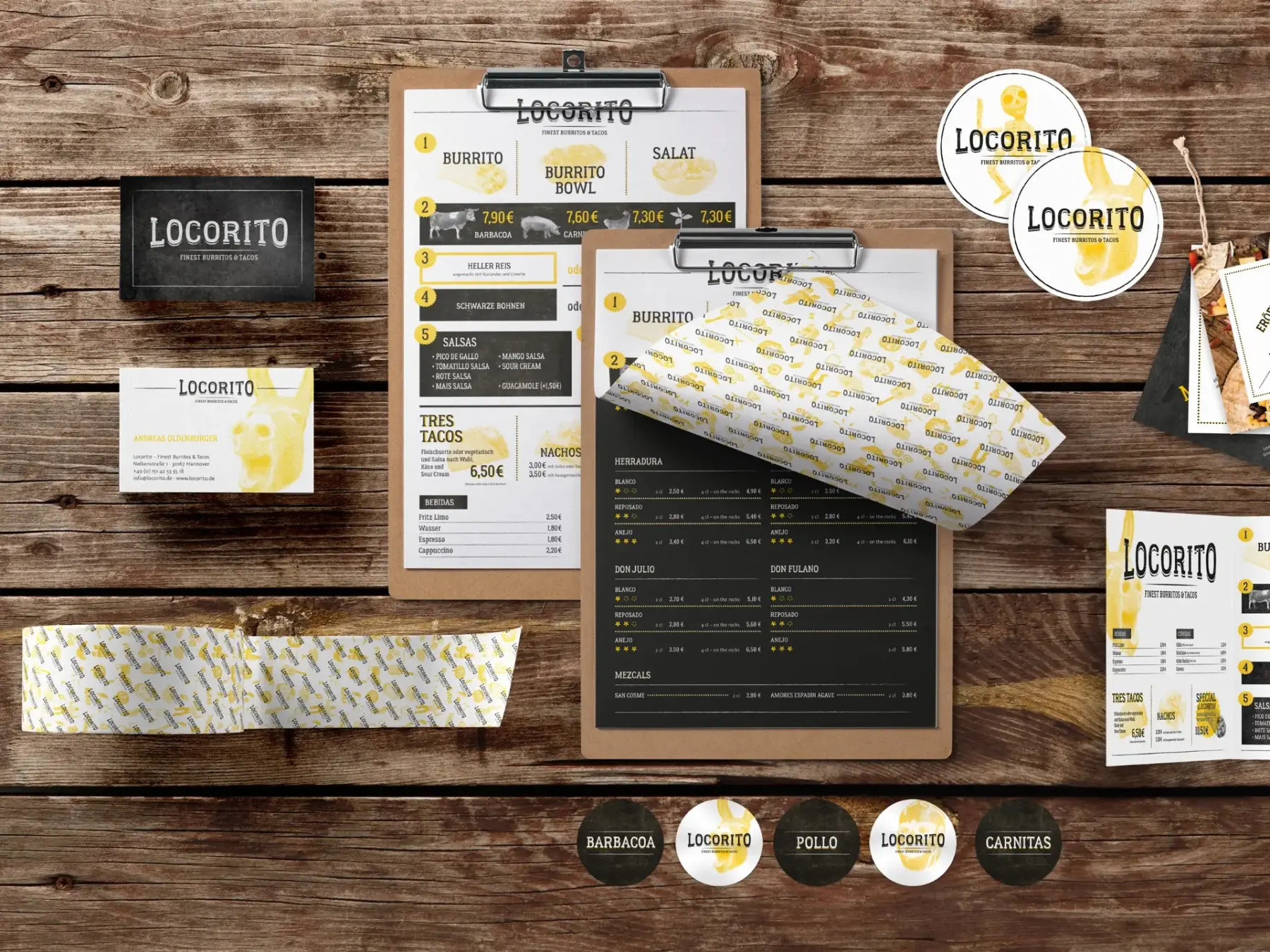Burger? Pizza? Pasta? Haben Städte zuhauf zu bieten. Aber ein echter Burrito-Laden? In Hannover bislang Fehlanzeige. Darum haben wir dem ersten mexikanischen Fast Food Restaurant der Stadt Namen und Gesicht gegeben. Das Konzept fürs »Locorito« setzt sich nicht nur in der Location konsequent durch – von der Geschäftsausstattung über die Karten bis zum eigenen Newspaper. Auch auf Social Media, Citylights und Anzeigen strahlt das Corporate Design direkt mexikanisches Lebensgefühl aus.