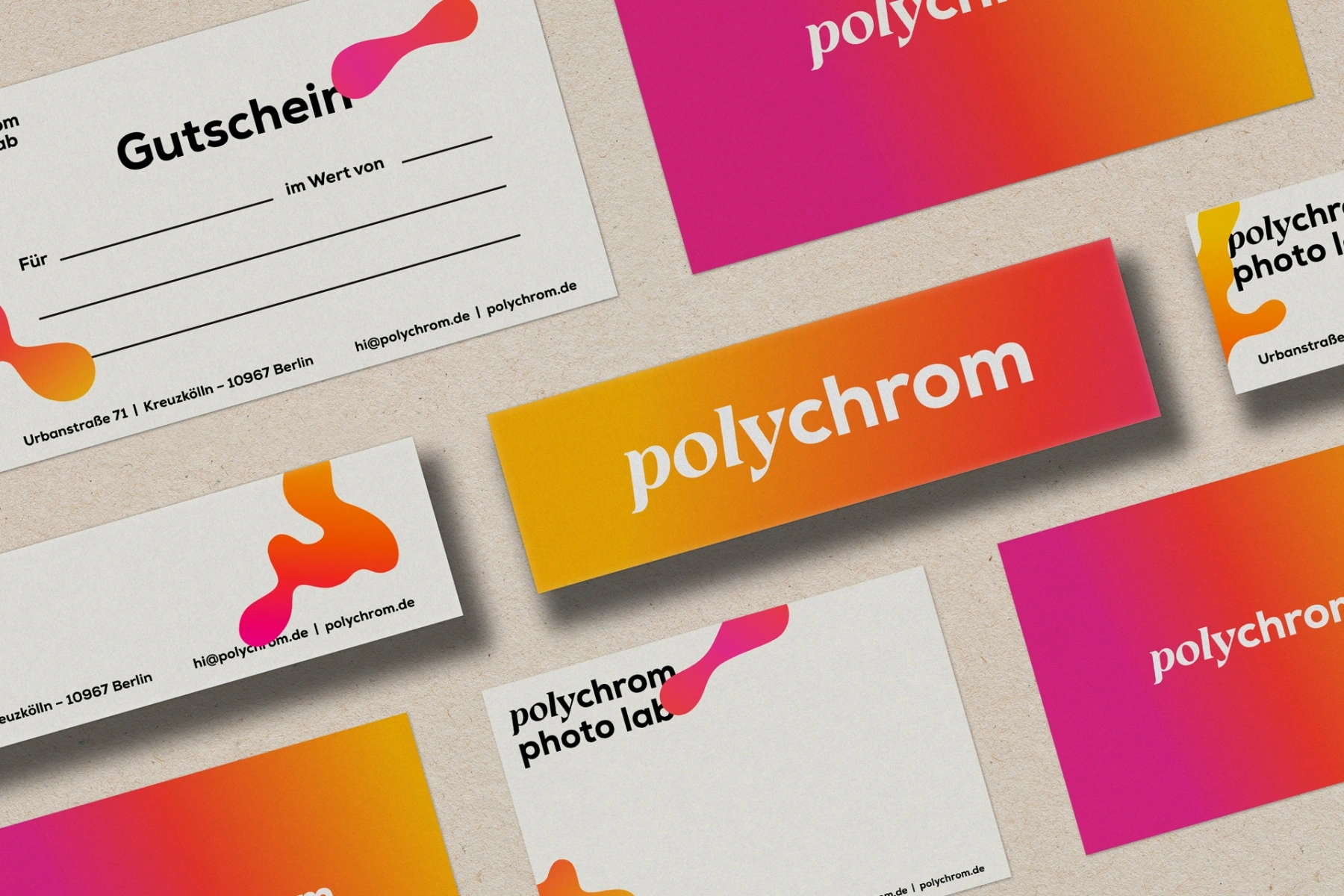 Polychrom ist ein experimentelles Fotolabor. Liebhaber der analogen Fotografie können hier verschiedene Techniken, Chemikalien und Papiere ausprobieren. Diese Experimentierfreude sollte sich in einer lebendigen und auffälligen Gestaltung widerspiegeln.