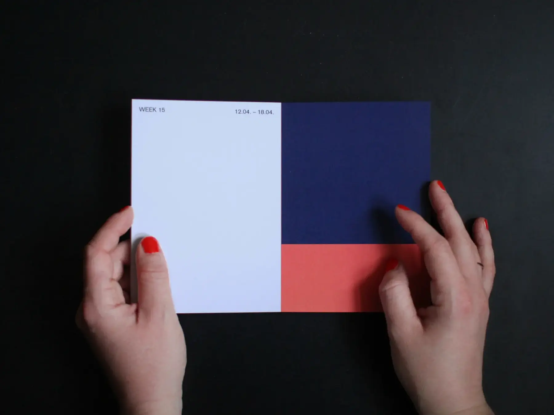 Diesen Wochenplaner kannst du verwenden wie es dir am Besten gefällt – als Kalender, Tagebuch, To Do Liste, Postkarte, Einkaufszettel oder Wanddekoration. Er besteht aus aus 55 Karten, gedruckt auf 300 g/m2 Munken Polar Papier mit einer leuchtend orange-farbenen Klebebindung. Eine Seite ist mit einer saisonalen Farbkombination bedruckt, die andere Seite ist für deine persönlichen Notizen. Alle Seiten lassen sich auch einzeln aus dem Buchblock heraustrennen.