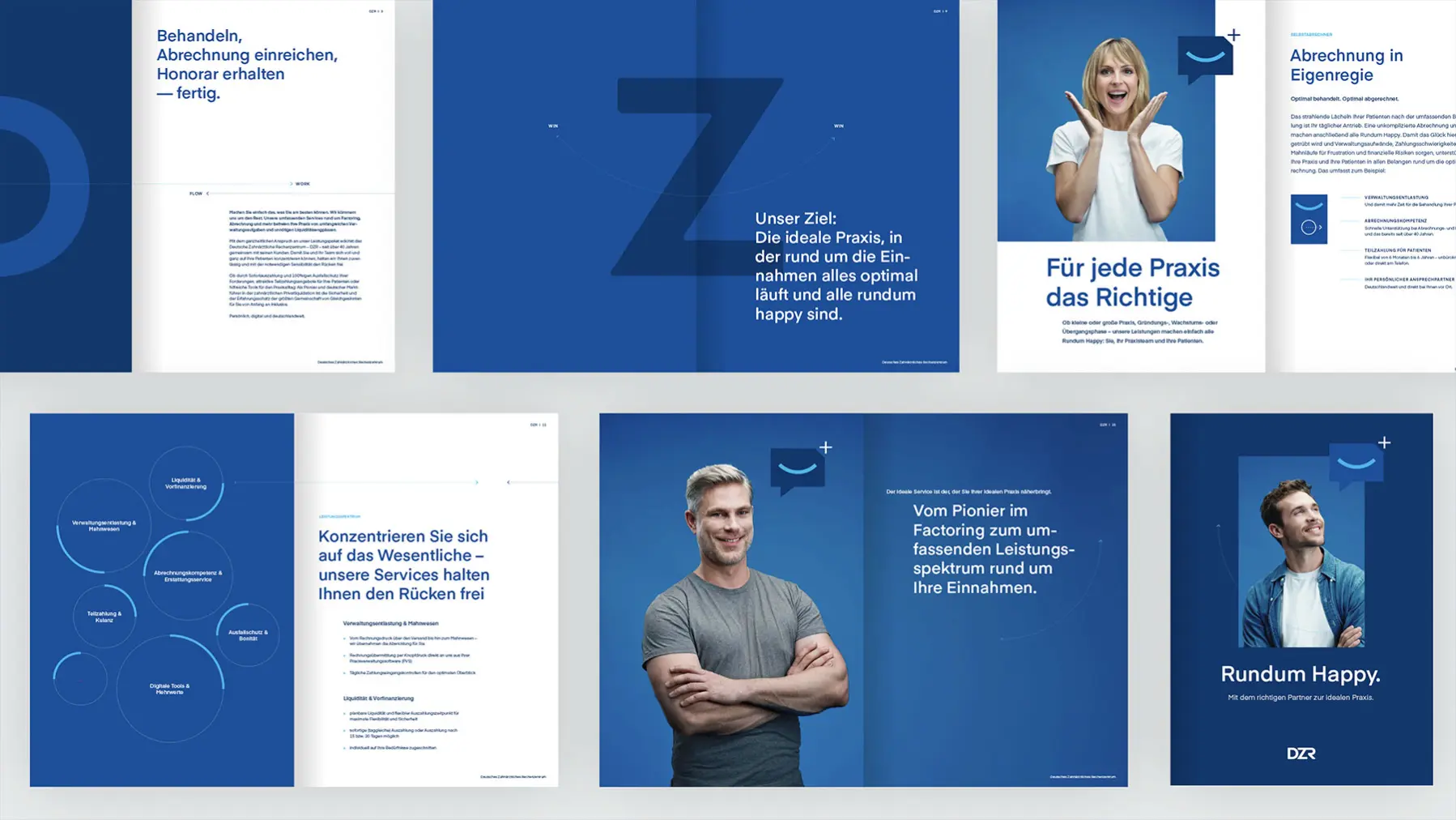 Der Kunde: Das Deutsche Zahnärztliche Rechenzentrum, kurz DZR. Marktführer im Factoring & 360° Abrechnungsmanagement für Zahnarztpraxen. Die Aufgabe: Entwicklung einer neuer Marken- und Kommunikationsstrategie zur Schärfung der Identität und des Leistungsfundaments des DZR.