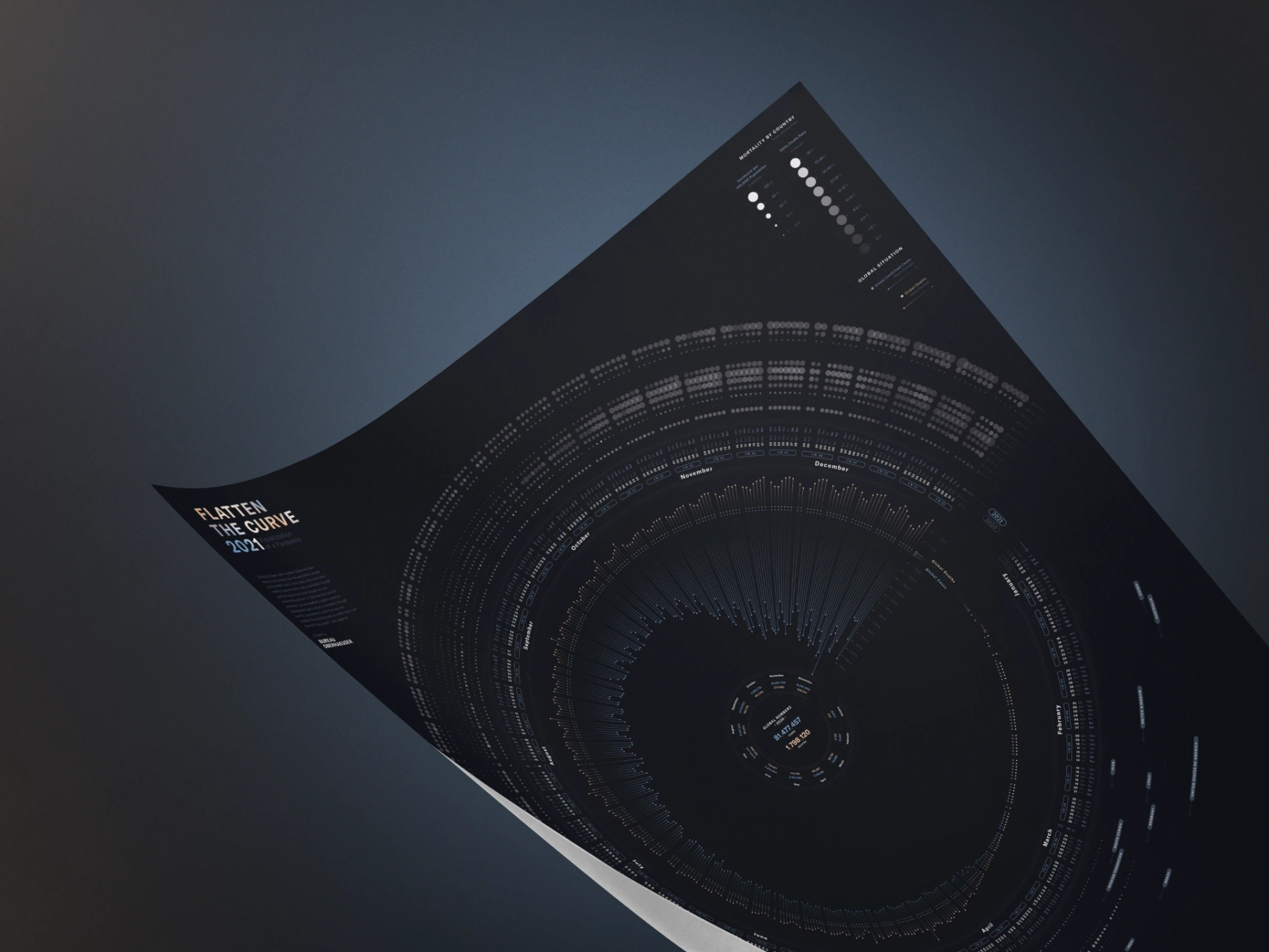 A bit of a passion project, something we’ve been doing since the beginning of starting our design studio has been to create a Calendar each year with a specific data visualization focus. Themes in the past have ranged from “When the World Celebrates”, to “Tech Startup Evolution”, to “Melting the Year”. And other times, it’s just about creating a beautiful new visualization of a Calendar.