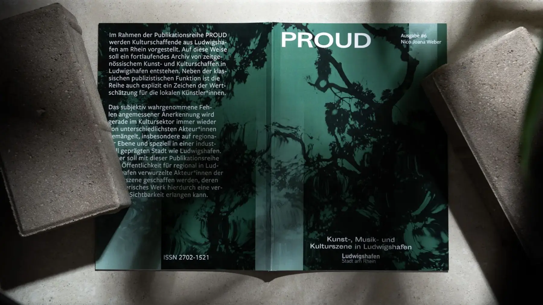 Auf diese Weise soll ein fortlaufendes Archiv von zeitgenössischem Kunst- und Kulturschaffen in Ludwigshafen entstehen. Neben der klassischen publizistischen Funktion ist die Reihe auch explizit ein Zeichen der Wertschätzung für die lokalen Künstler*innen. Das Proud-Magazin erscheint viermal im Jahr. Die Redaktion hat Julia Katharina Thiemann übernommen, die Gestaltung Sebastian Moock. Bisher erschienen sind Proud #1: Wolfgang Vogel, Proud #2: Erwin Ditzner, Proud #3: Buero für angewandten Realismus, Proud #4: Mwangi Hutter und Proud #5: Gabriele Twardawa und das AdRem Jugendtheater. Zwei weitere Veröffentlichungen sind in diesem Jahr noch geplant.