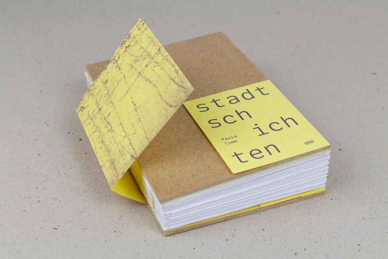 »Stadtschichten« überträgt diese vertraute Grenzwelt in eine experimentelle Buchkonzeption, in welcher das Buch zur Stadt wird. Der Leser begibt sich auf einen Spaziergang: In der Leere der zunächst weiß erscheinenden Seiten wandert er durch die Stadt, inmitten der ausgeblendeten Monotonie der Straßen. In der Peripherie erahnt er jedoch die versteckten Welten der Höfe. Beim Blättern, wie im Vorbeigehen, erscheinen die Höfe nur als Schimmer durch die gefalteten Seiten. Durch das Erkunden und Öffnen dieser, entfaltet sich die Stadt in den Raum – Texte und Bilder überdecken und ergänzen sich in wandelnden Überlagerungen und bauen in ihrer Variation verschiedene Bezüge auf. Es entsteht ein nie vollständiges, individuelles Puzzle, in dem der Leser selbst Eindrücke sammelt und kombiniert, wie auch die Spaziergänger die Stadt stets neu wahrnimmt.