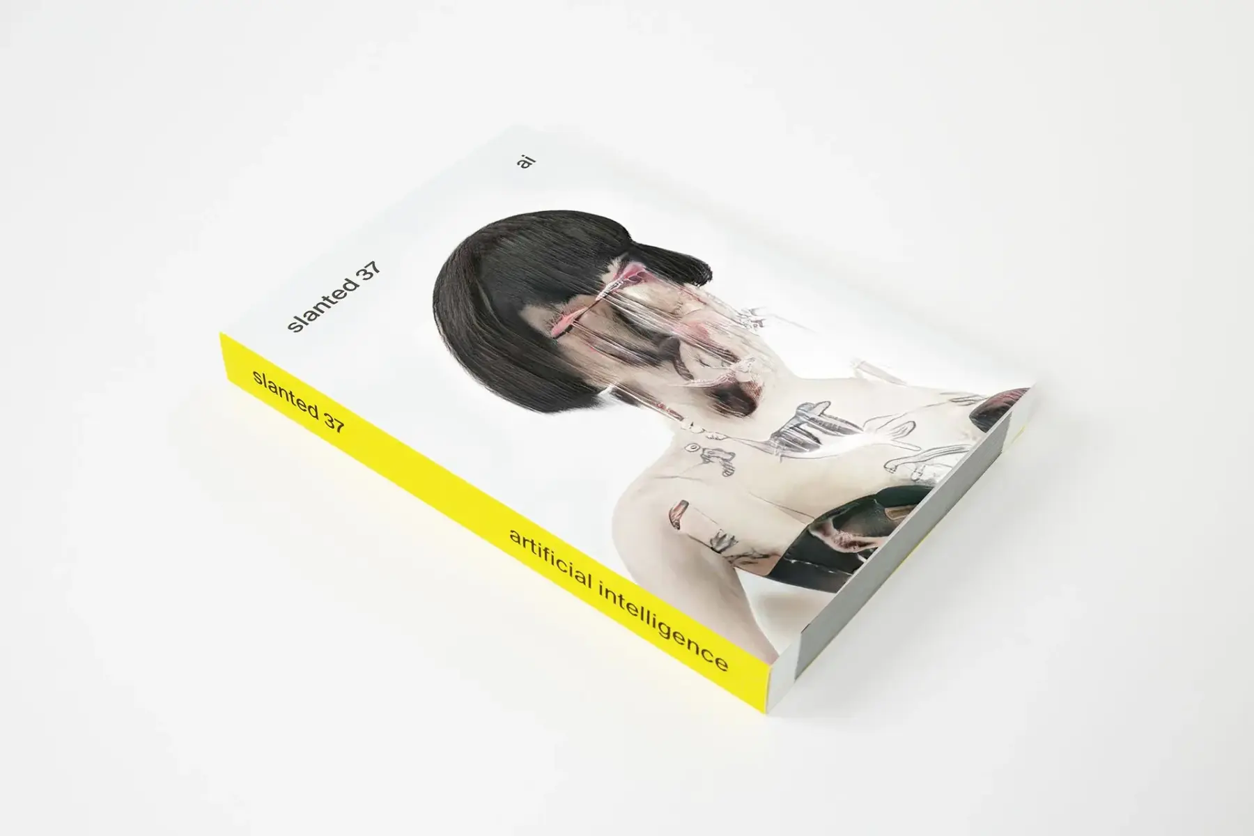 Bei Slanted arbeiten wir »hands on«. Wir lieben den menschlichen Funken, provozieren glückliche Unfälle (Kratzer und Pannen), erkunden Kanten und betreten konsequent unbekanntes Terrain. Also ja, obwohl dies eine gedruckte Ausgabe ist, könnte sie sehr wohl auf einen neuronalen Chip transportiert worden sein. Und wir haben definitiv einige Möglichkeiten gefunden, die Ausgabe in eine andere Dimension zu bringen: Für jedes Cover der gesamten Ausgabe wurde ein einzigartiges Motiv von Crosslucid gedruckt—die Ästhetik zwischen Porträt, Stillleben und expressionistischer Topografie, fremd für unser Verständnis von dem, was menschlich, natürlich, künstlich und digital ist.