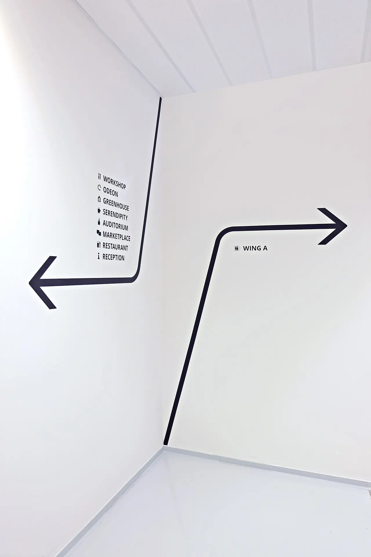 »Future. Created in Hamburg«. So lautet das Motto des Zentrums für Angewandte Luftfahrtforschung in Hamburg. Die neue Signaletik begleitet die zahlreichen internationalen Gäste sowie Mitarbeiter_innen mit einer dynamischen visuellen Sprache durch das Gebäude, die eng mit Luftfahrt verwandt ist. Durch Abstraktion und Neuinterpretation bietet sie gerade für Luftfahrtexperten einen atmosphärischen Perspektivwechsel im technologisierten Alltag.