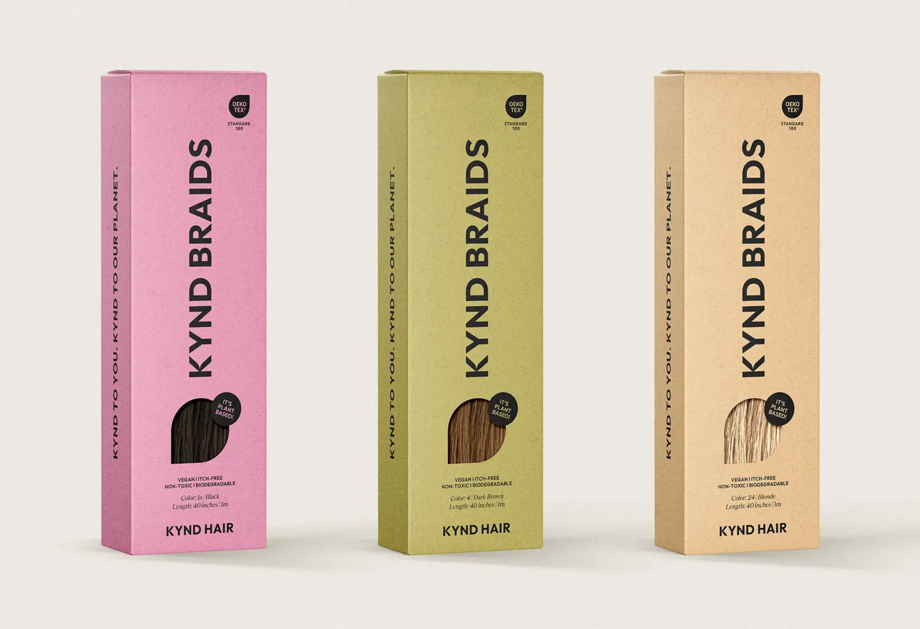 Kynd Hair is changing the hair extension industry one braid at a time by creating the first plant-based, hypoallergenic hair extensions, made from plants – fairly produced in Germany. In this way founder Cosima Richardson is addressing two major problems caused by most conventional hair extensions: sustainability and health. Fairness, sustainability, functionality and transparency are the core values of the brand that are communicated in a bold and confident way: clean typography and minimalistic design meet lively photography embracing nature. Kynd Hair is fun and approachable and at the same time cool – but never exclusive. The bright colors and the overall light and friendly mood welcome everyone into the Kynd Hair community. This brand truly is kynd to you. And to the planet.