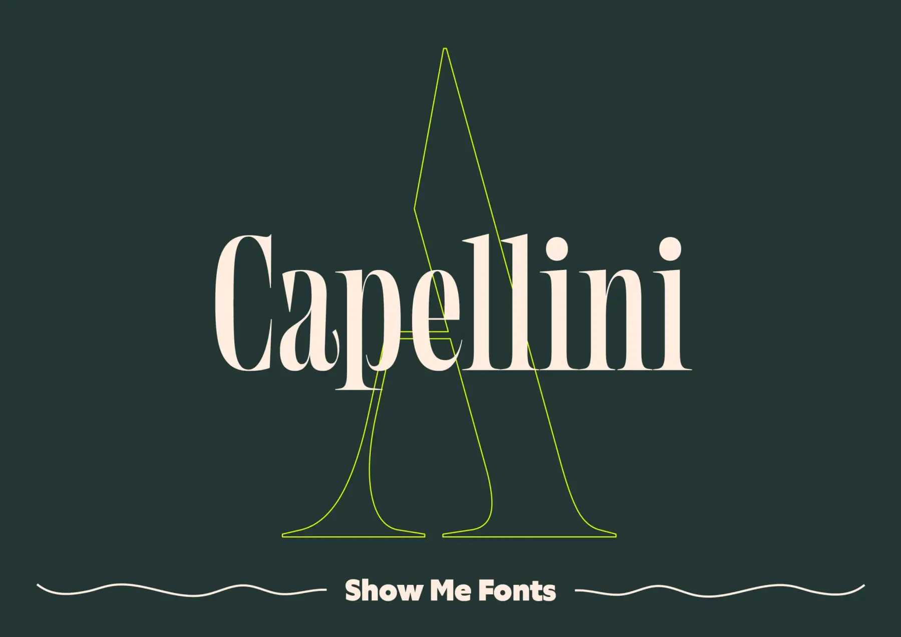 Die Gestaltung von Capellini leitet sich von einer Logo-Skizze ab, die Bernd für Astrid Gleichmann, eine Berliner Videokünstlerin, gestaltet hat. Das Potential einer Skizze schien noch nicht ausgeschöpft und so überspitzte er das Design indem er eine extrem schmale Variante zeichnete. Aufgrund ihrer schmalen Proportionen und variablen Breite, ist Capellini ideal für Formate wie Instagram-Stories, Reels und Plakate.