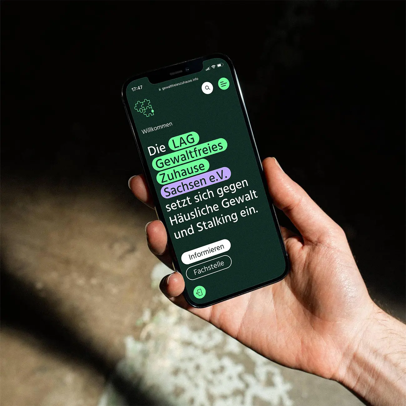 Corporate Identity und Website für die LAG Gewaltfreies Zuhause Sachsen e.V. und die dazugehörige Fachstelle häusliche Gewalt. Zum Projekt gehörten die Modernisierung des Logos und das entwickeln verschiedener Logovarianten für diverse Anwendungszwecke und Medien, die Entwicklung einer Coporate Identity sowie die Konzeption, Gestaltung und Programmierung der Website.