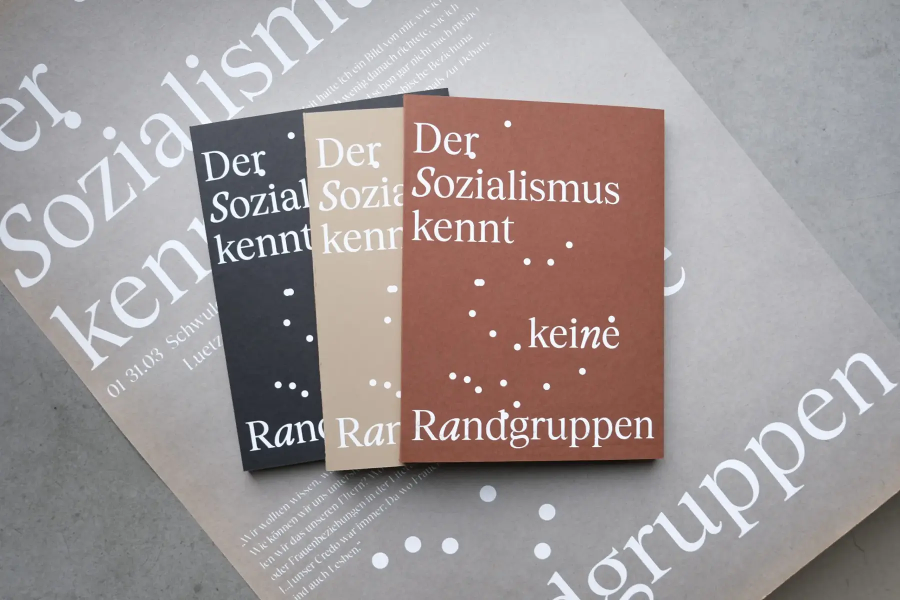 Der Sozialismus kennt keine Randgruppen ist eine Sammlung aus Archivmaterial und Artikeln, die sich mit lesbischem Leben in der DDR beschäftigen. Das Buch soll einen Eindruck über das Leben lesbischer Frauen in Ostdeutschland zwischen Nachkriegszeit und Wiedervereinigung vermitteln. Es ist kein Geschichtsbuch. Das Buch ist eine studentische Arbeit und ist im Wintersemester 23/24 an der FH Potsdam im Kurs „Archiv & Narration“, unter Betreuung von Susanne Stahl entstanden. Zusätzlich zum Buch wurde ein Poster gestaltet. Umschlag und Poster sind im Siebdruckverfahren gedruckt, das Buch wurde von Hand in einer Schweizer Broschur mit acht-seitigem Umschlag gebunden. Es hat 136 Seiten.