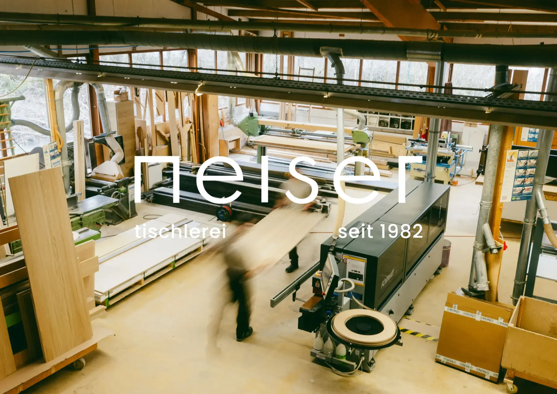 Das Design ist minimalistisch gehalten und reflektiert die Moderne in Kombination mit der Tradition. Im Zentrum steht ein klares, geradliniges Logo, dessen Buchstaben nur aus geraden Linien bestehen und die Präzision und Exzellenz des Handwerks symbolisiert. Zur Tischlerei Neiser passt am besten ein reduziertes, freundliches Design.