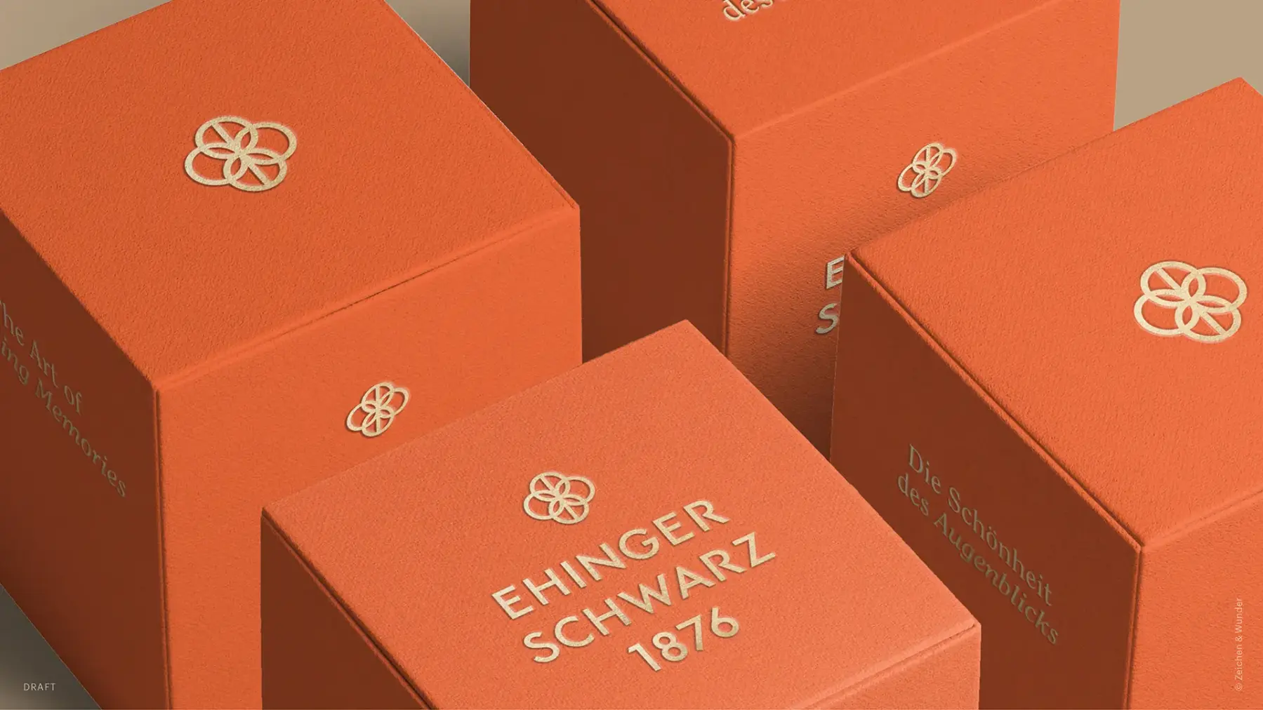 Eine Laudatio auf das Leben ist auch das neue Corporate Design. Im Zentrum des Logos steht, sanft auf die hohe Kunst des Goldschmiede-Werkstätten verweisend, ein abstrahiertes Punziereisen. Zusammen mit einem starken, aktivierenden Bright Orange, der Bildsprache mit ihren warmen, geerdeten Farbtönen und dem Einsatz von Naturdetailtexturen unterstützt es die neue Eleganz der Marke, die erst vor kurzem mit mehreren international renommierten Designawards ausgezeichnet wurde.