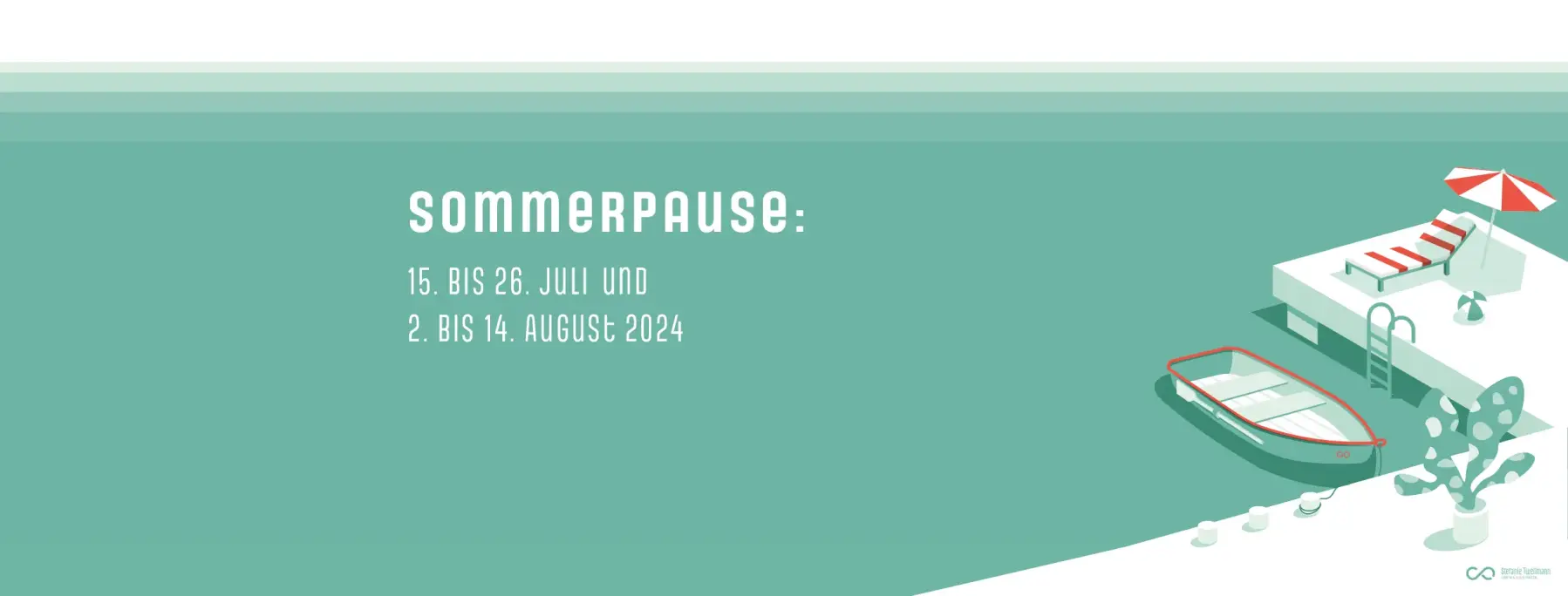 Vektorillustriertes und teilweise animiertes Motiv, erstellt im Rahmen des firmeneigenen Marketings zur Ankündigung der diesjährigen Büro-Sommerpause. Die Illustration wird in Kundenmailings und in den sozialen Medien verwendet.