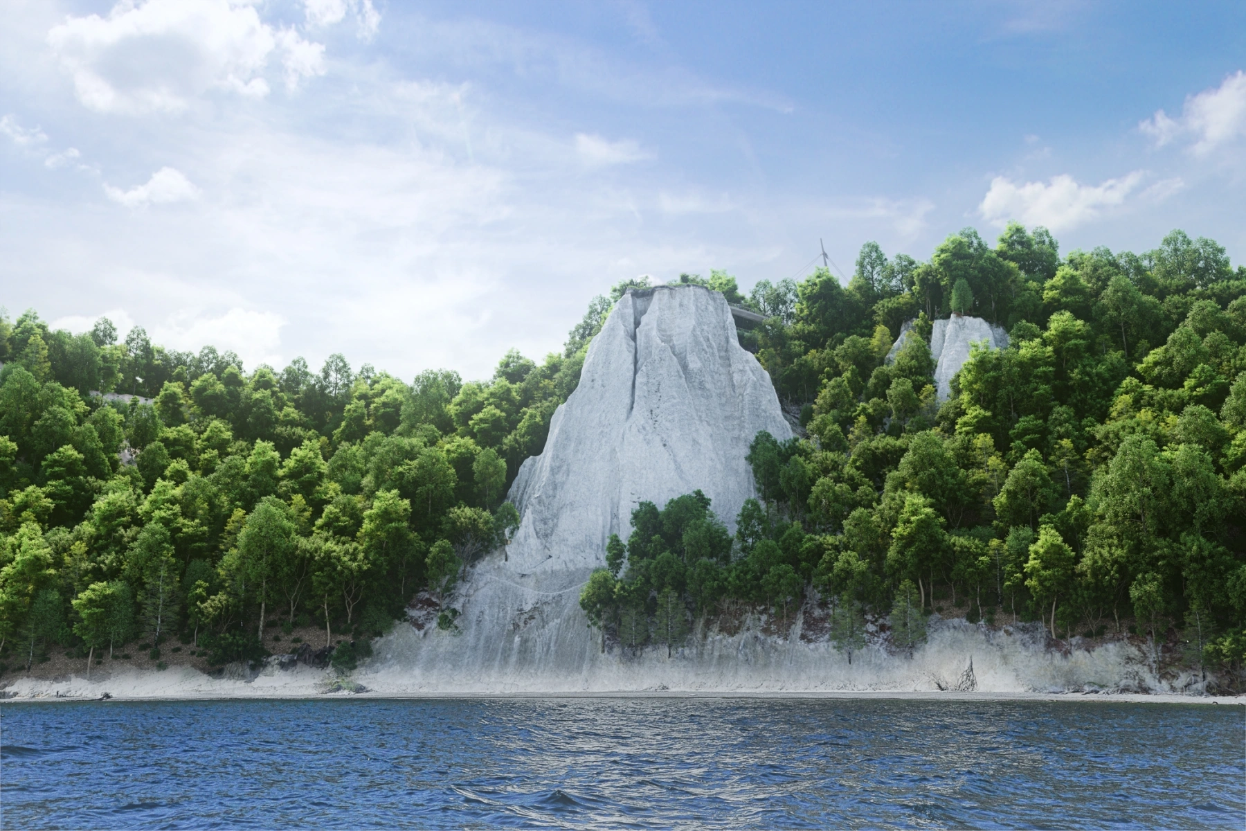 Anhand von Bildmaterial einer Flugdrohne und der Technik der Photogrammetrie wurde eine detailierteres 3D Modell des Kreidefelsens mitsamt Texturen erstellt. Wärend des Bauvorgangs wurde auf dem Gelände des Nationalpark-Zentrums ein Info Cube eigerichtet in welchem man unter anderem anhand von 3D Brillen 360 Grad VR Bilder der Brücke anschauen konnte wärend diese noch im Bau war.