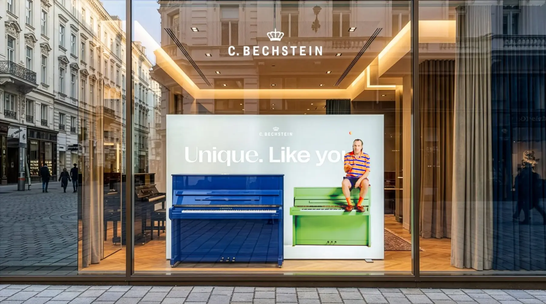 Möglich wurde all das durch eine Strategie und Kreation aus einer Hand – getragen von einem eingespielten Core-Team aus Head of Marketing Morgan Franke und der Senior Art Direktorin Natascha Kornilowa und unterstützt von einem kleinen Marketing-Team. Gemeinsam entstanden Kampagnen, Foto- und Videoproduktionen, Kooperationen, Eventformate und ein konsistenter Markenaufbau. Diese enge Verzahnung von Konzept, Gestaltung und Umsetzung bei gleichzeitigem Respekt für und dem Wissen um die Marke hat es erlaubt, C. Bechstein ganzheitlich weiter-zuentwickeln und ihre neue Positionierung nach innen wie nach außen erlebbar zu machen.