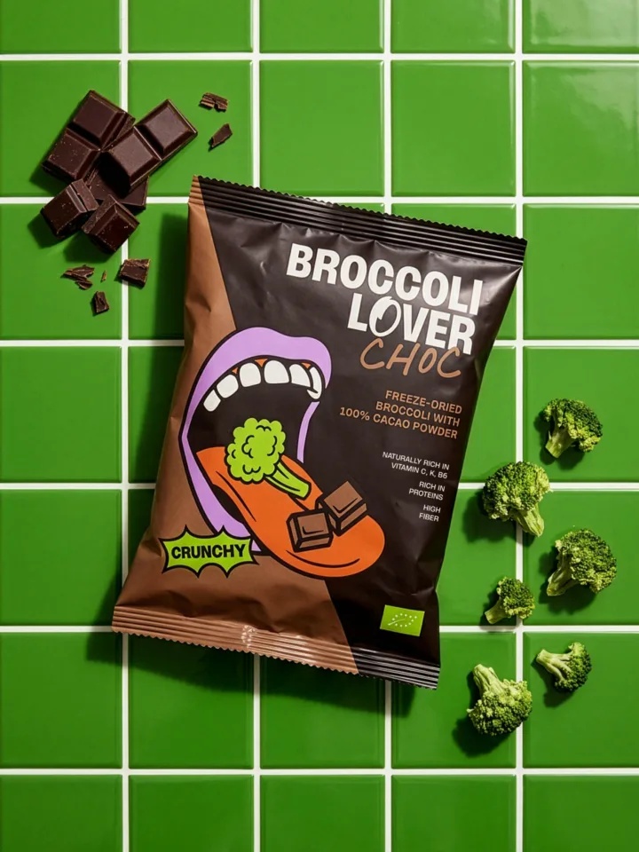 Mit Broccoli Lover wird Brokkoli neu gedacht: gefriergetrocknete Brokkoli-Röschen in den drei überraschenden Sorten Choc, Chili und Lemon. Gemeinsam mit Gründerin Esther Fenske entwickelte MILK ein Packaging Design, das Food und Fashion miteinander verbindet und gesunden Snack neu inszeniert.