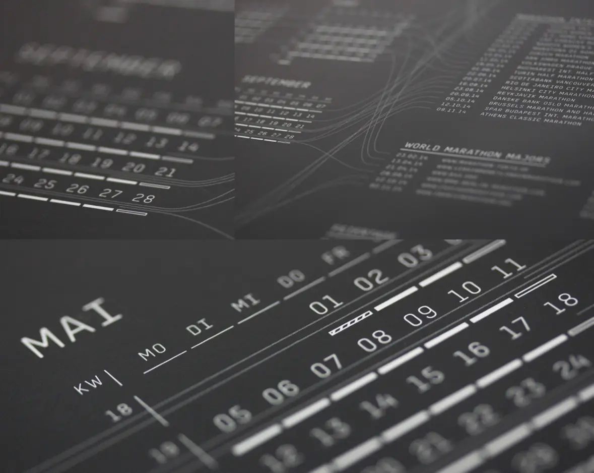 Ein Kalender mit silbernem Rubbel-Lack zur Dokumentation des eigenen Laufverhaltens. Bleibt motiviert und seht euren Fortschritt auf einen Blick. Ausserdem alle Termine der wichtigsten Laufveranstaltungen in Deutschland sowie der World Marathon Majors für 2014.
