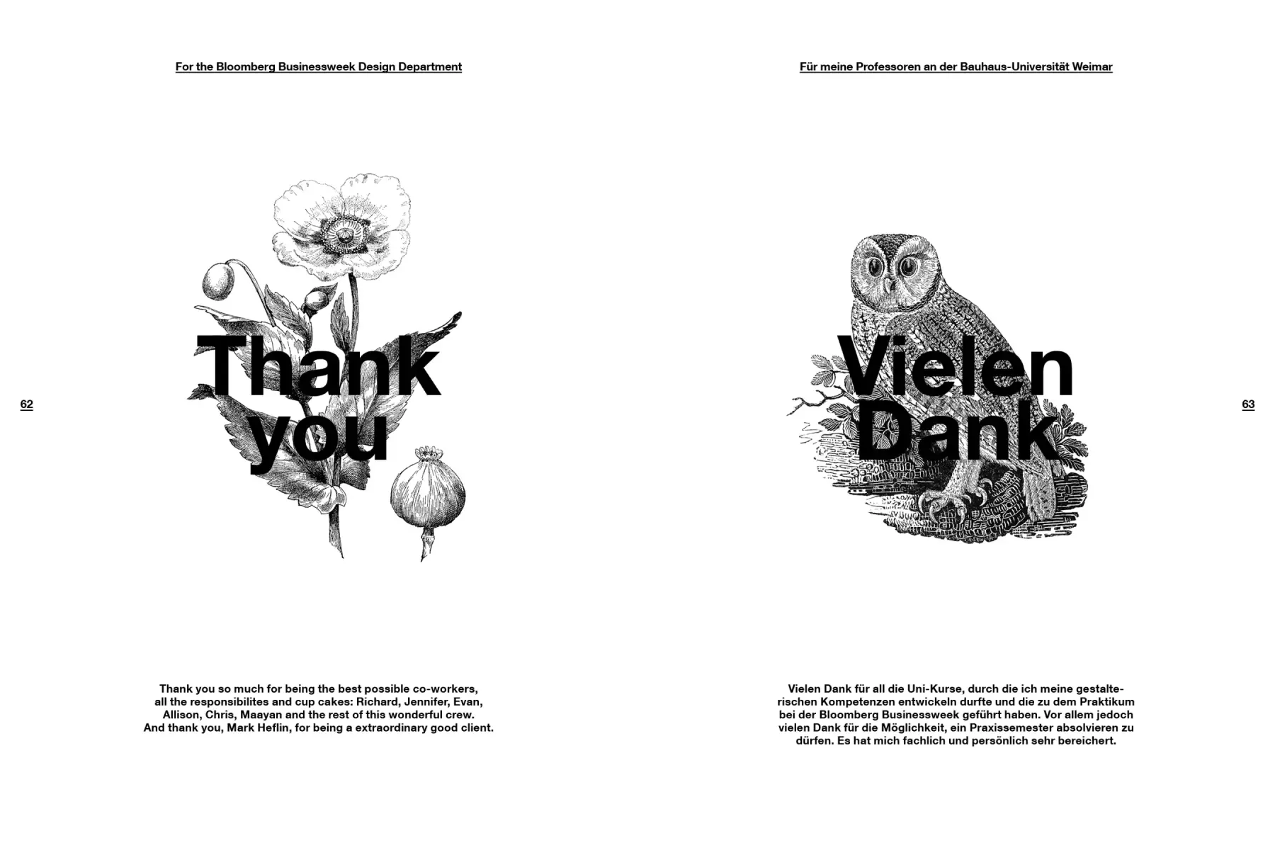 Im Sommer 2013 absolvierte ich ein dreimonatiges Praktikum bei dem Wirtschaftsmagazin “Bloomberg Businessweek” in New York. Nach diesem großartigen Erlebnis gestaltete ich innerhalb von wenigen Tagen einen 64-seitigen Praktikumsbericht für meine Uni (Bauhaus-Universität Weimar).