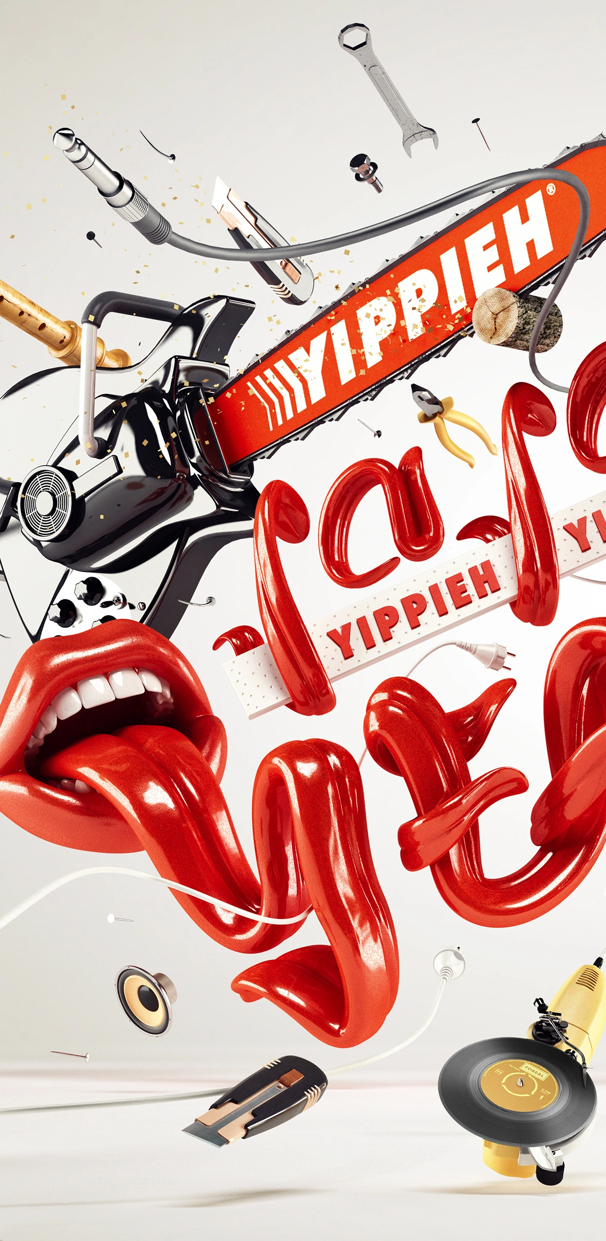 “Yippieh Ja Ja Yippieh Yippieh Yeah” is one of the best known soundlogos in Germany and was invented by NHB studios for the DIY superstore Hornbach. Our challenge was to create a visual interpretation of this award winning sound logo and what it stands for. We created a world where tools mix up with musical instruments and tongues forming the well known slogan. Produced in collaboration with Weigertpirouzwolf.