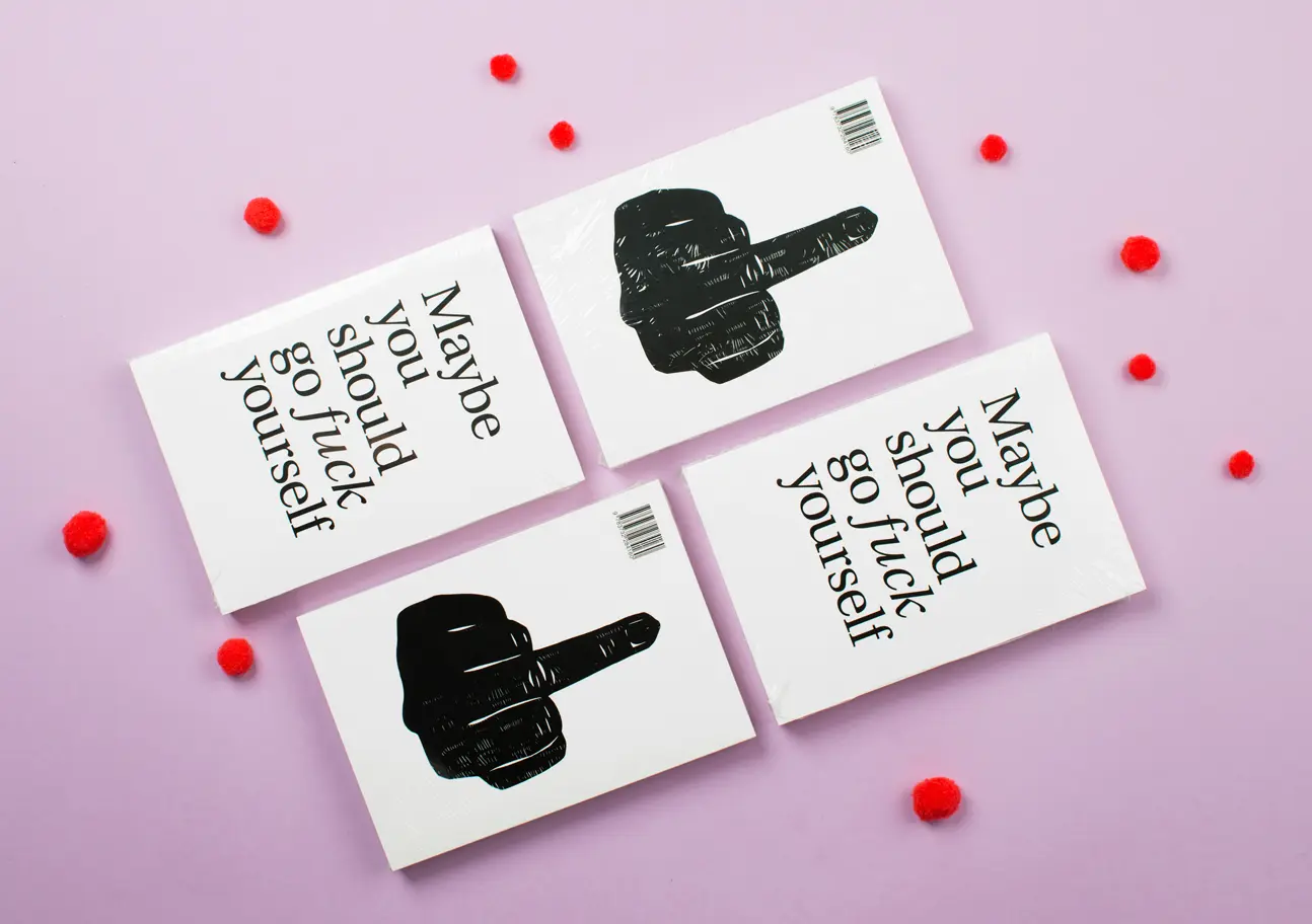 Maybe you should go fuck yourself ist ein von uns geschrieben und gestaltetes Buch. Auf etwa 300 Seiten enthält es eigens verfasste Texte, Essays von Außenstehenden, Interviews, Fotografien, Illustrationen und Infografiken.