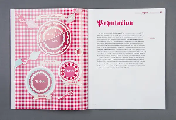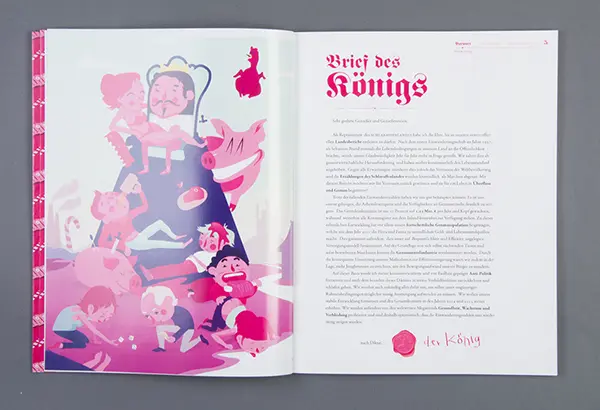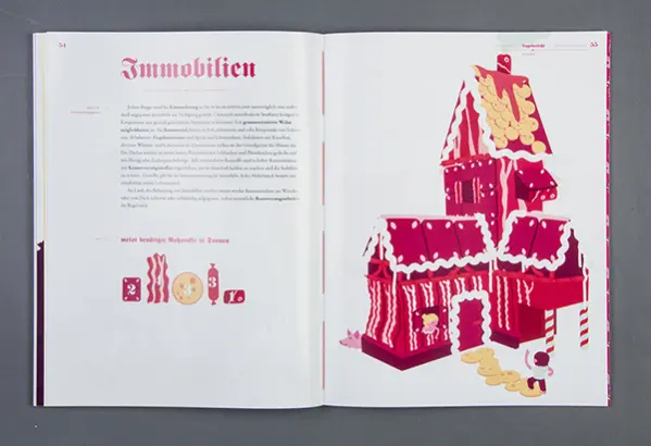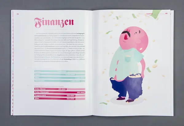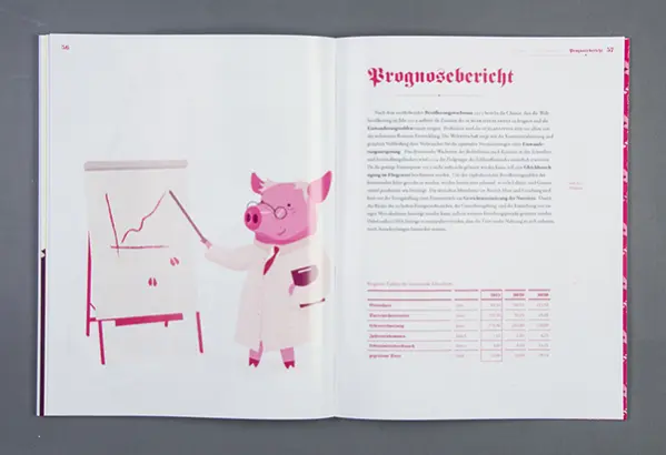Ein Semesterprojekt der FH Münster hat sich jenseits dieser biografischen Reihenfolge den Märchen angenommen und den Studenten die Aufgabe gegeben, sie in das Hier und Jetzt zu holen indem sie wie Geschäftsberichte aufbereitet werden. Damit verändert sich auf spannende Weise die Sichtweise auf die Märchen, die zwar inhaltlich gleich bleiben, so aber anders präsentiert werden. Ein Geschäftsbericht ist eine der wichtigsten Informationsquellen über Strategie, Tätigkeit und Erfolg des Unternehmens oder eben eines Märchens. Geschäftliche Entwicklungen kennzeichnen nicht nur den Verlauf vieler realer Geschehnisse, sie sind auch treibende Kraft hinter vielen klassischen Märchen. Da verwandelt sich manch arme Müllerin in eine Königstochter, Hans tauscht sein Gold in immer handlichere Währung, Schätze werden entdeckt oder gehen verloren und mittellose Schneider werden unversehens reiche Männer.